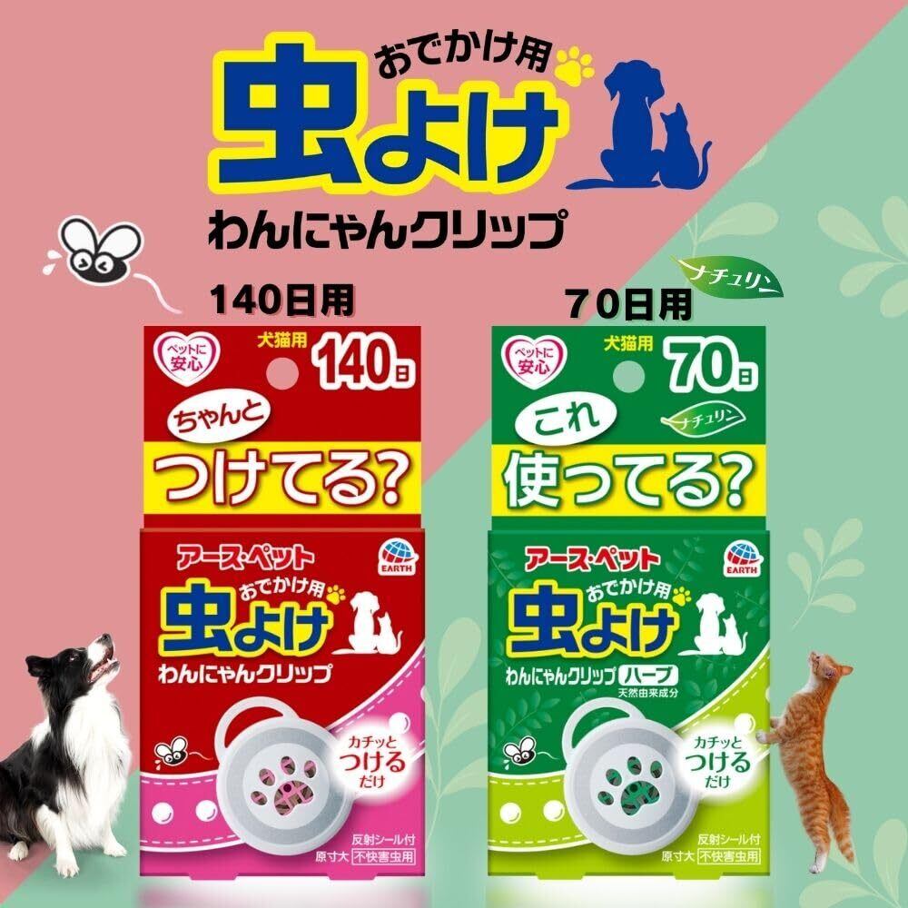アース・ペット 虫よけわんにゃんクリップ140日用【2個入】 犬猫用 無香料 おでかけ用 雨でも使える ミニサイズ