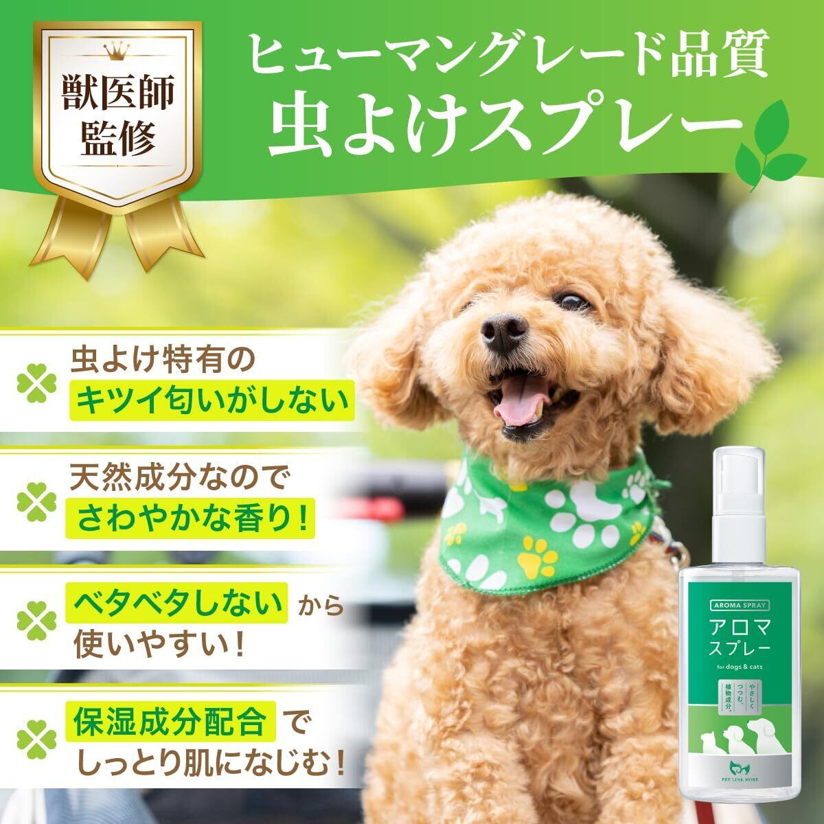 PETLINKMORE 虫除けスプレー【獣医師監修】アロマ 犬 虫よけ 蚊 マダニ 散歩 アウトドア 植物由来 100ml 国内製造