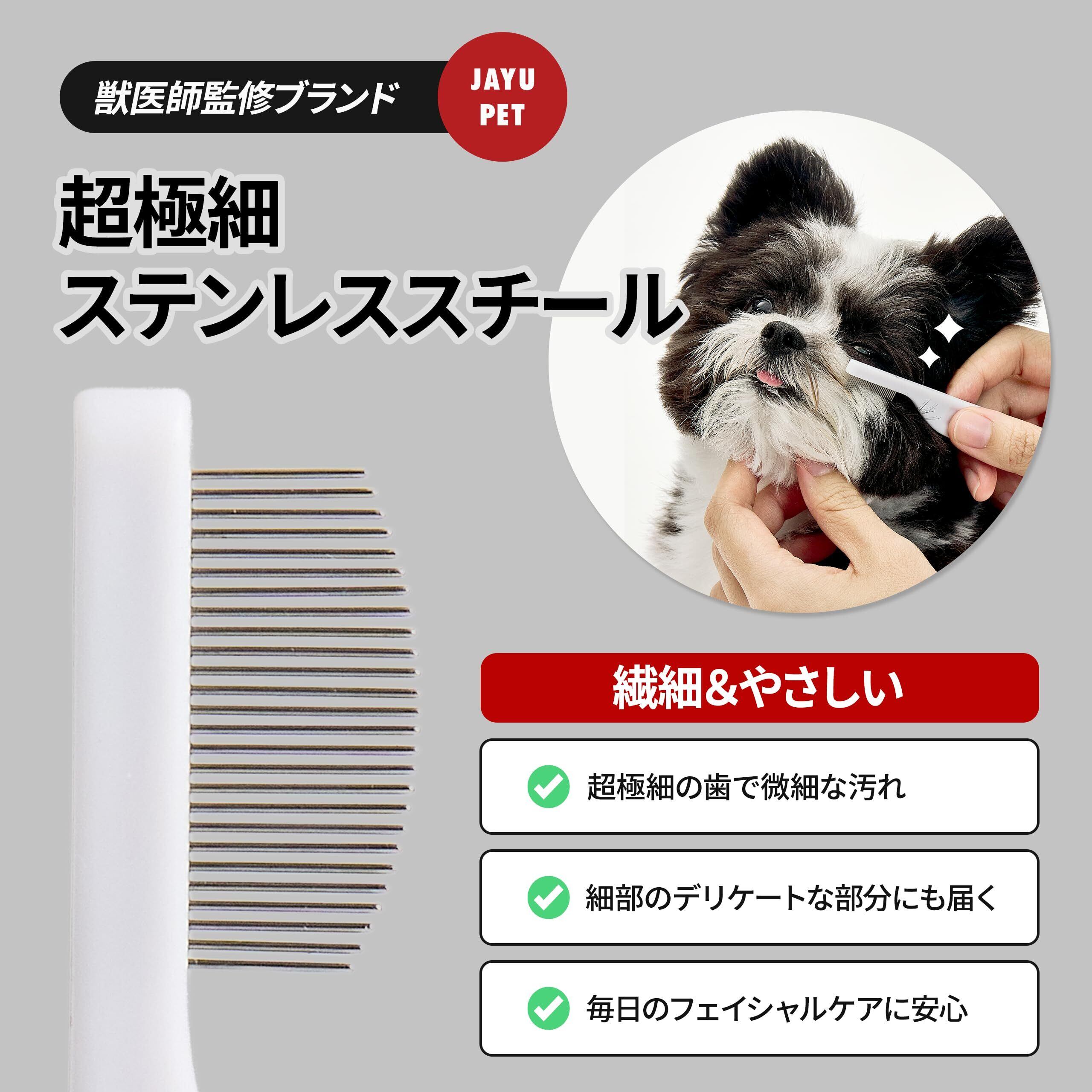 JAYU PET フェイシャル グルーミングコーム - 犬 猫用 アイコーム 涙やけ 目やに取り ストレスフリー フェイシャルブラシ ペット用 ケアブラシ グルーミングキット ステンレス製 抜け毛取りコーム