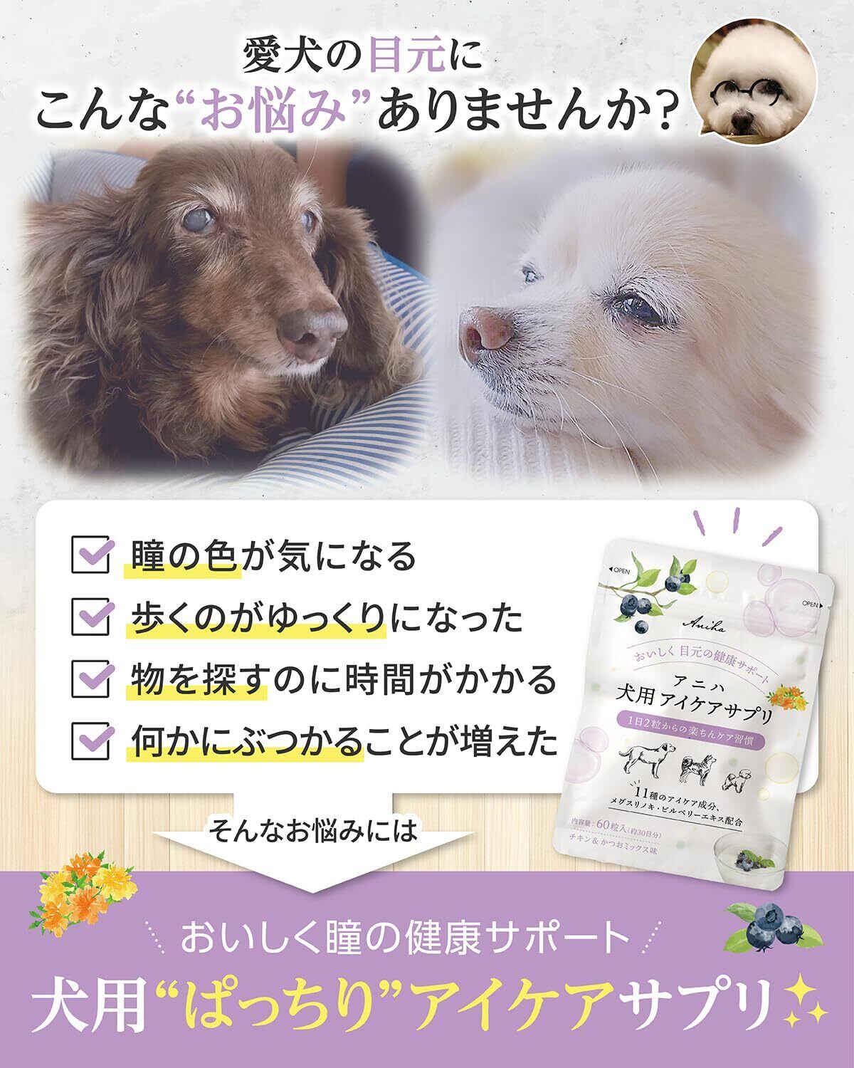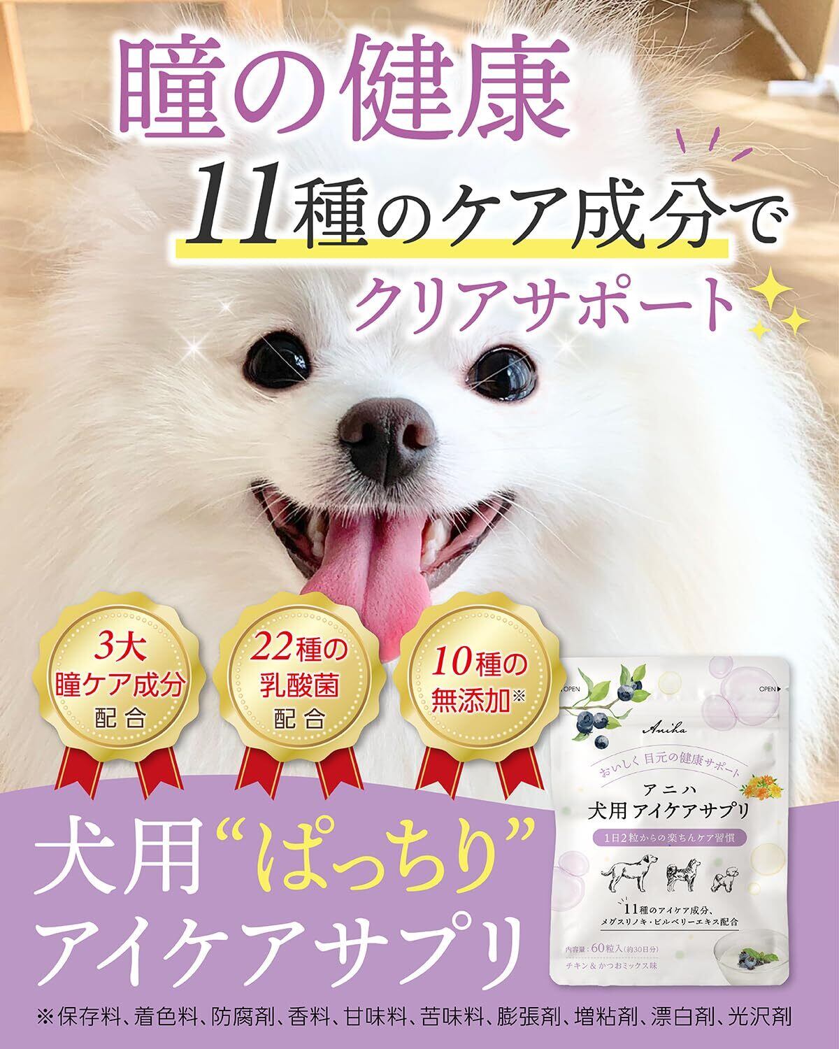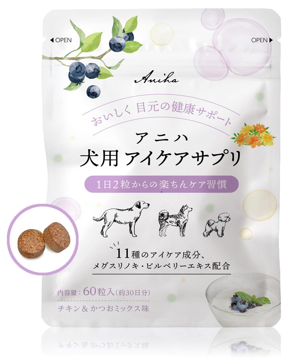 アニハ 犬用“瞳の健康サポート”アイケアサプリ【獣医師監修】11種のアイケア成分・22種の乳酸菌・NMN配合 60粒入り