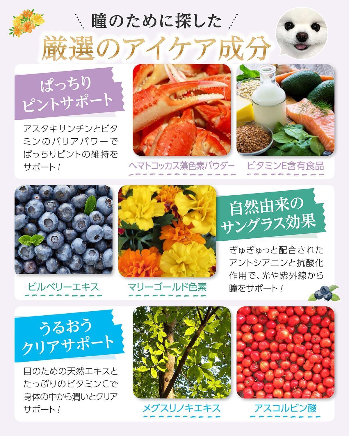 【獣医師監修:食べるアイケア】瞳や目元の調子が心配なワンちゃんの為に"獣医師監修"として開発された、チキン&かつおMIX味のアイケアサプリ