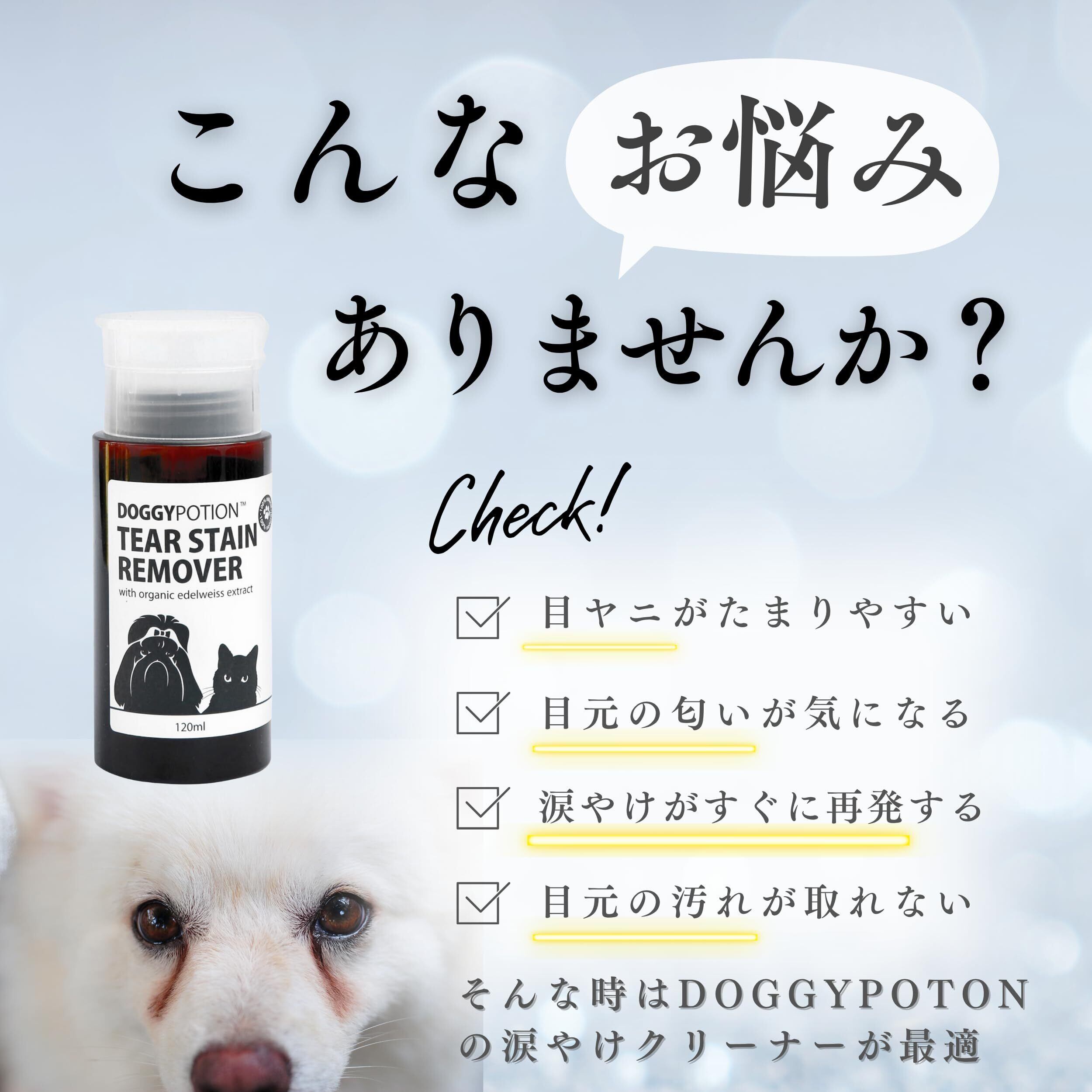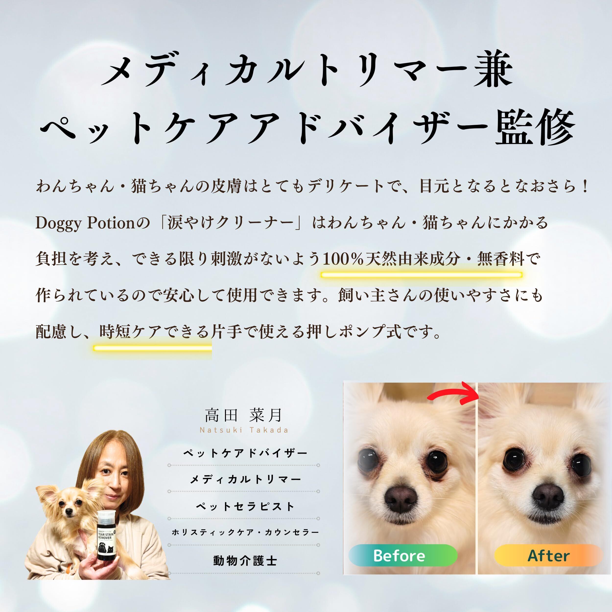 犬 涙やけクリーナー 涙やけ 無香料 天然成分100% コットンで拭くだけ デリケートな目元対応【獣医師&トリマー推奨】DOGGY POTION 120mL