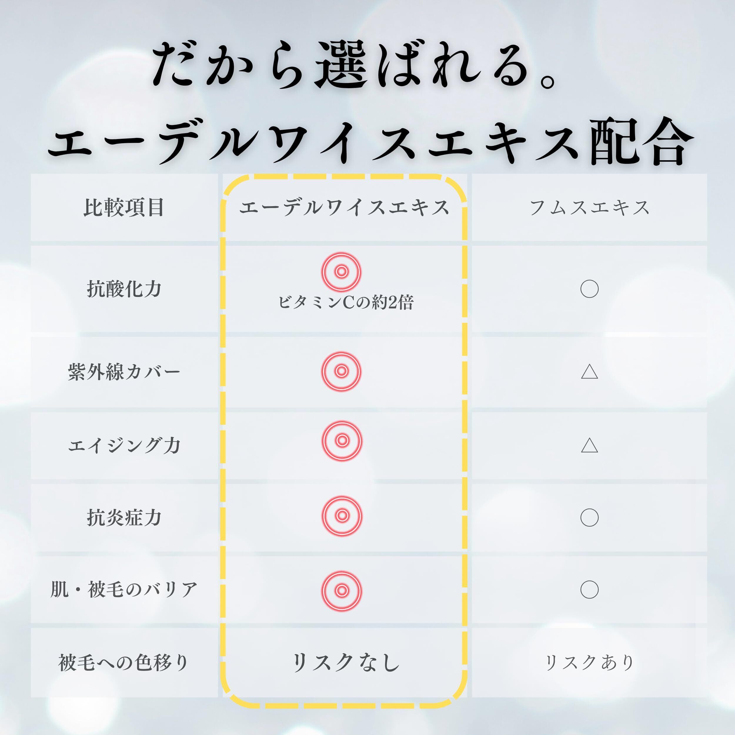 【目元のしつこい涙やけをやさしくオフ】目元の茶色い涙やけ、もう悩まない。オーガニックエーデルワイスエキス配合。デリケートな目元の皮膚と被毛に負担をかけず、こびりついた涙やけ汚れや色素沈着を徐々にやさしく緩和します。