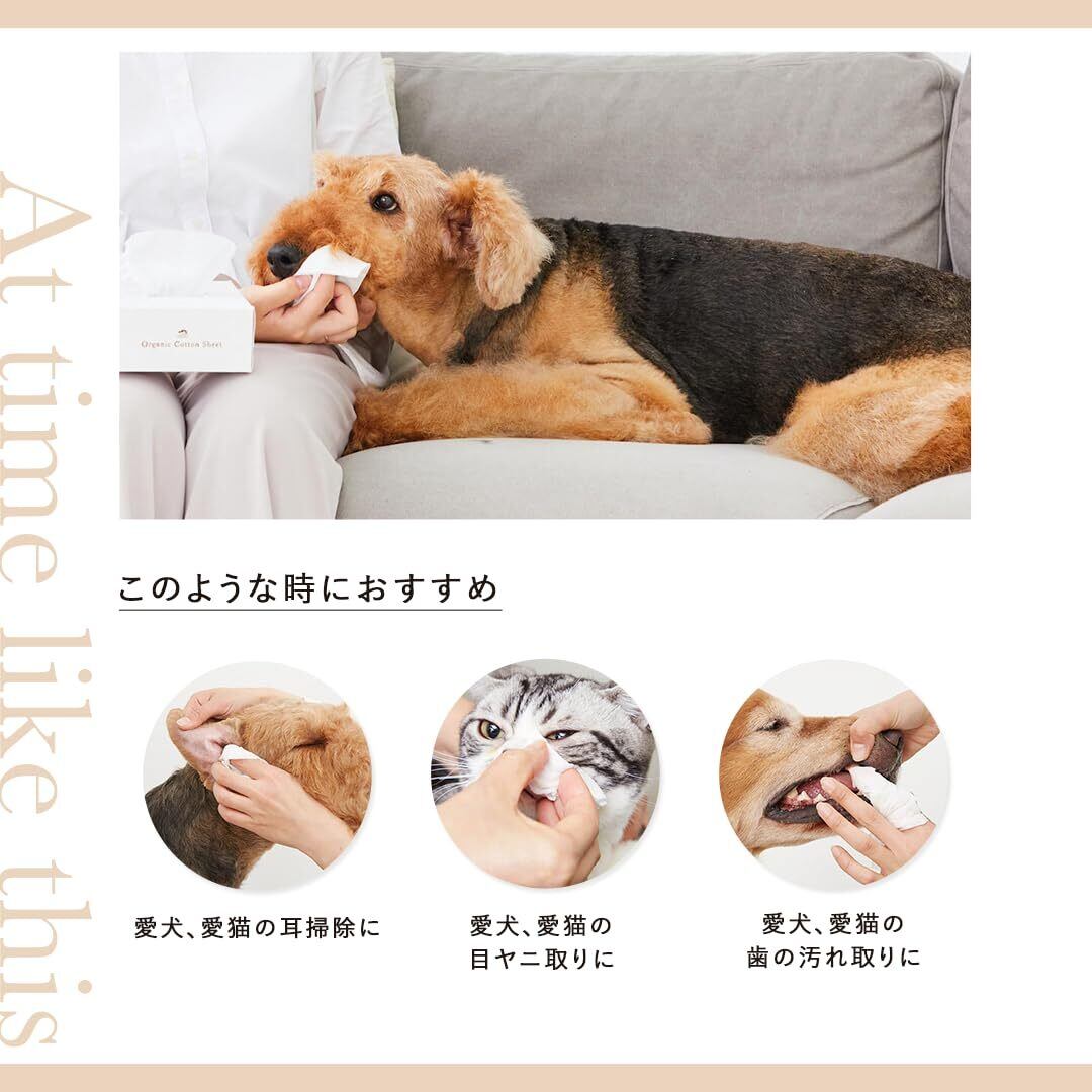 【多用途に使える】耳掃除、目ヤニ取り、歯の汚れケアなど、犬・猫の日常ケアに幅広く対応。コットンサイズ:24cm × 11cm