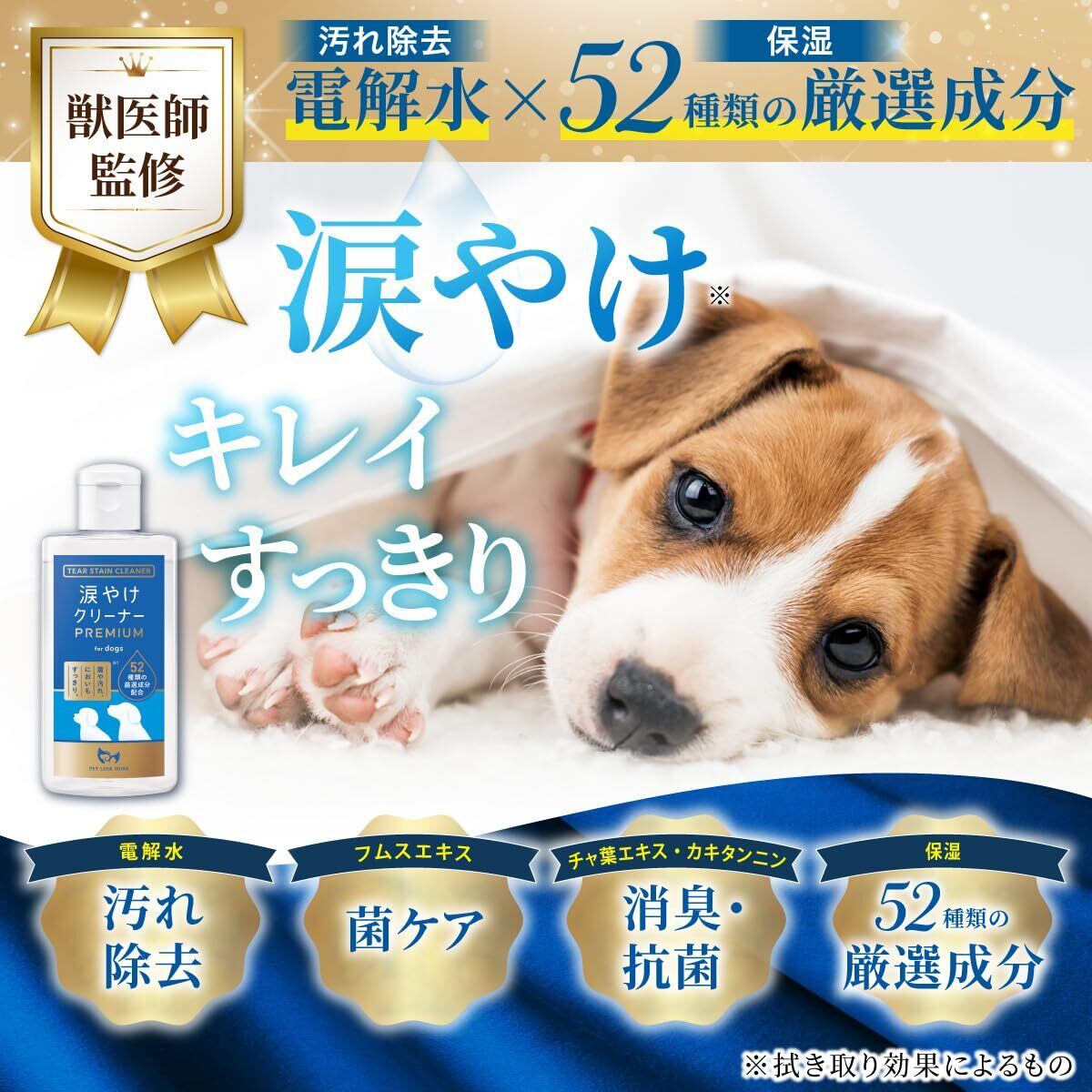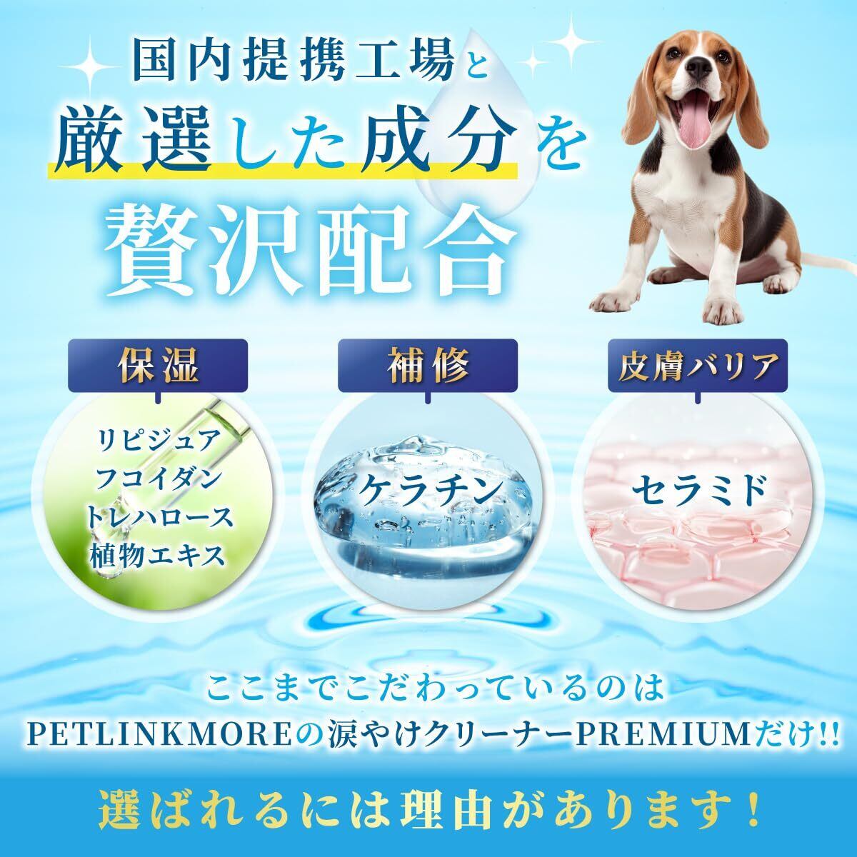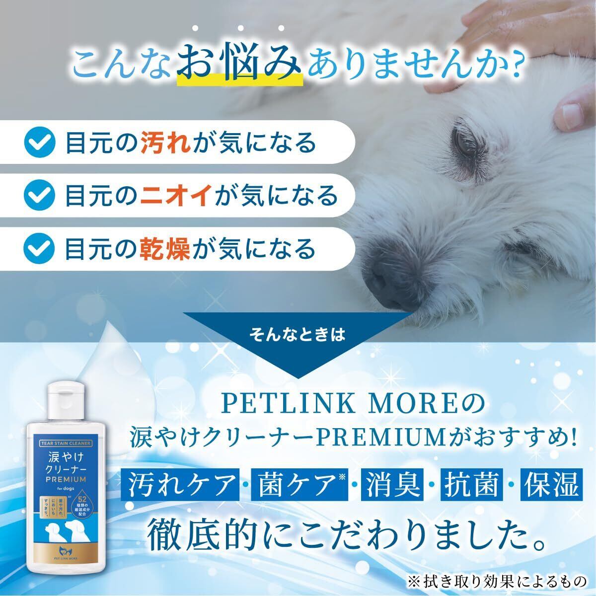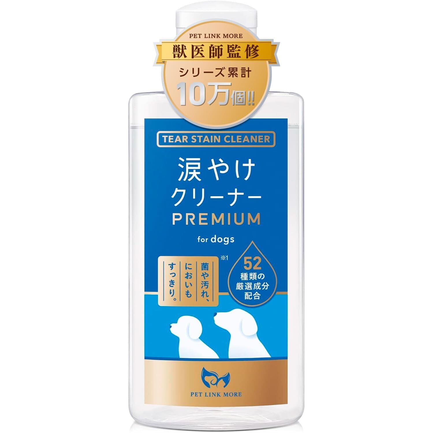 PETLINKMORE 【獣医師監修】犬 涙焼け クリーナー PREMIUM 高保湿 消臭 抗菌 フムスエキス 52種類の保湿成分 100ml