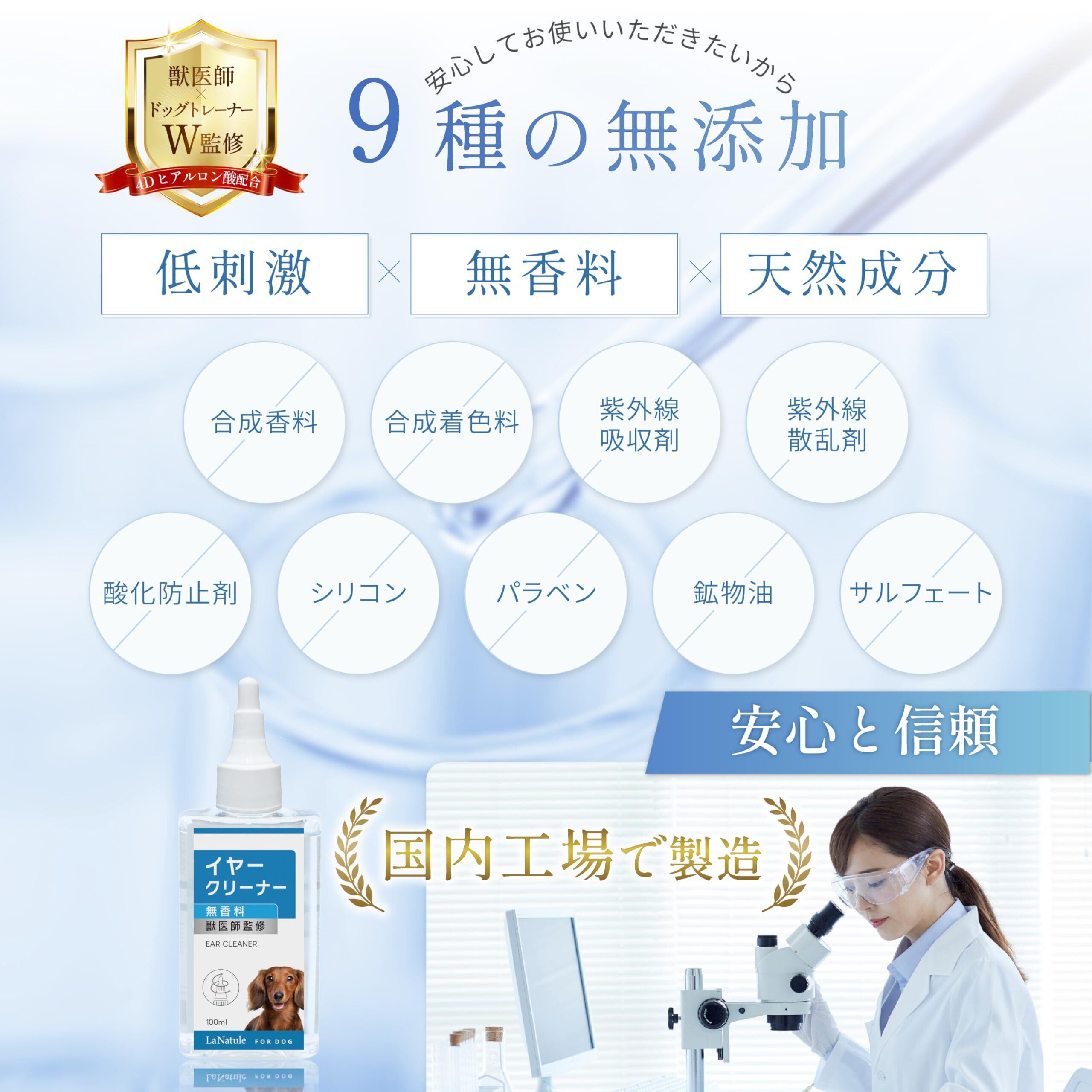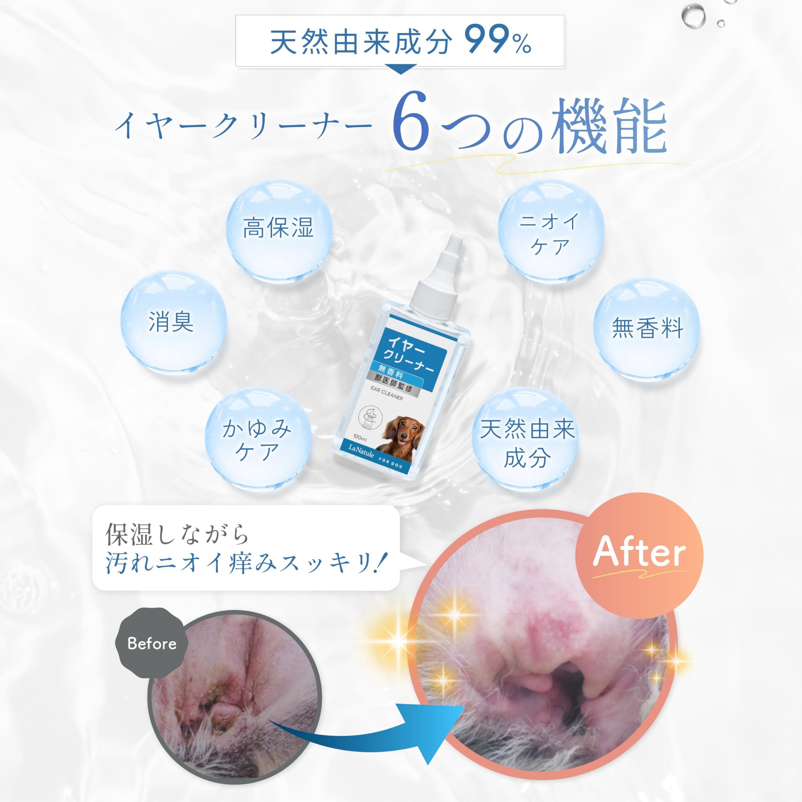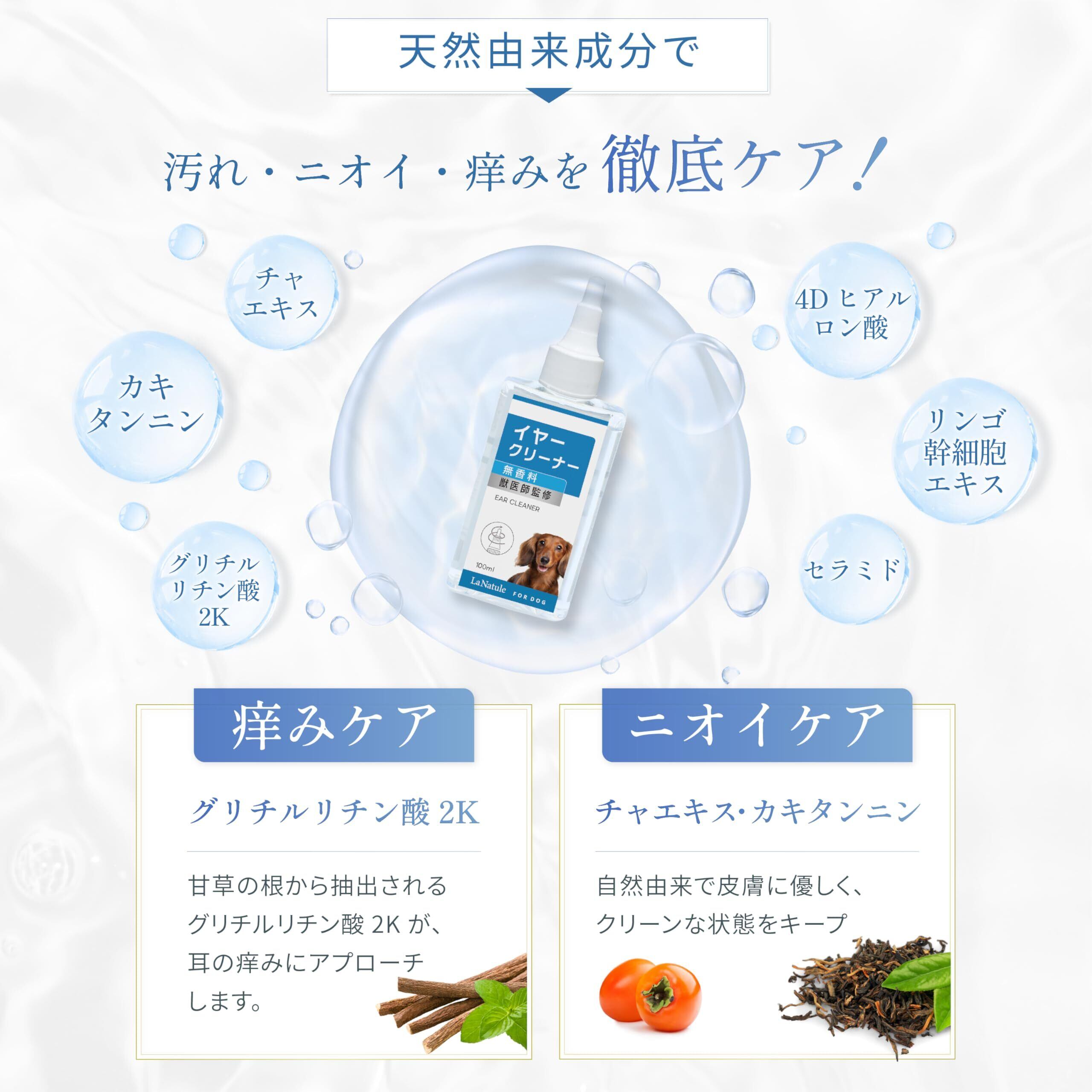 【獣医師監修】犬 猫 耳掃除 耳 洗浄液 イヤークリーナー 低刺激 LaNatule わんちゃんライフ 4Dヒアルロン酸 100ml