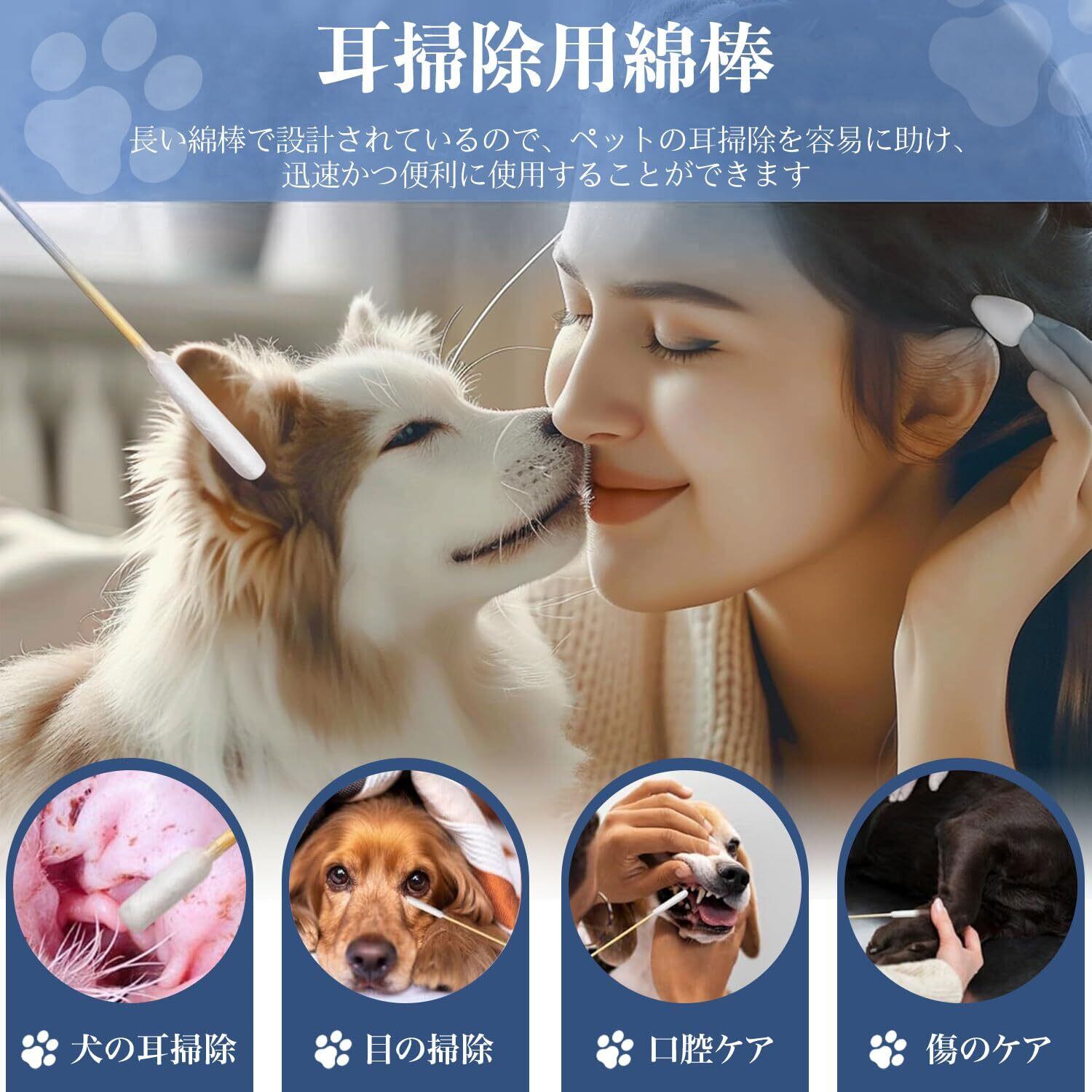 ペット 耳掃除綿棒 綿棒 ペット用 ペット 100本セット 犬猫兼用 長柄設計 やわらかい素材 耳ケア用 安全先端 ペットグッズ