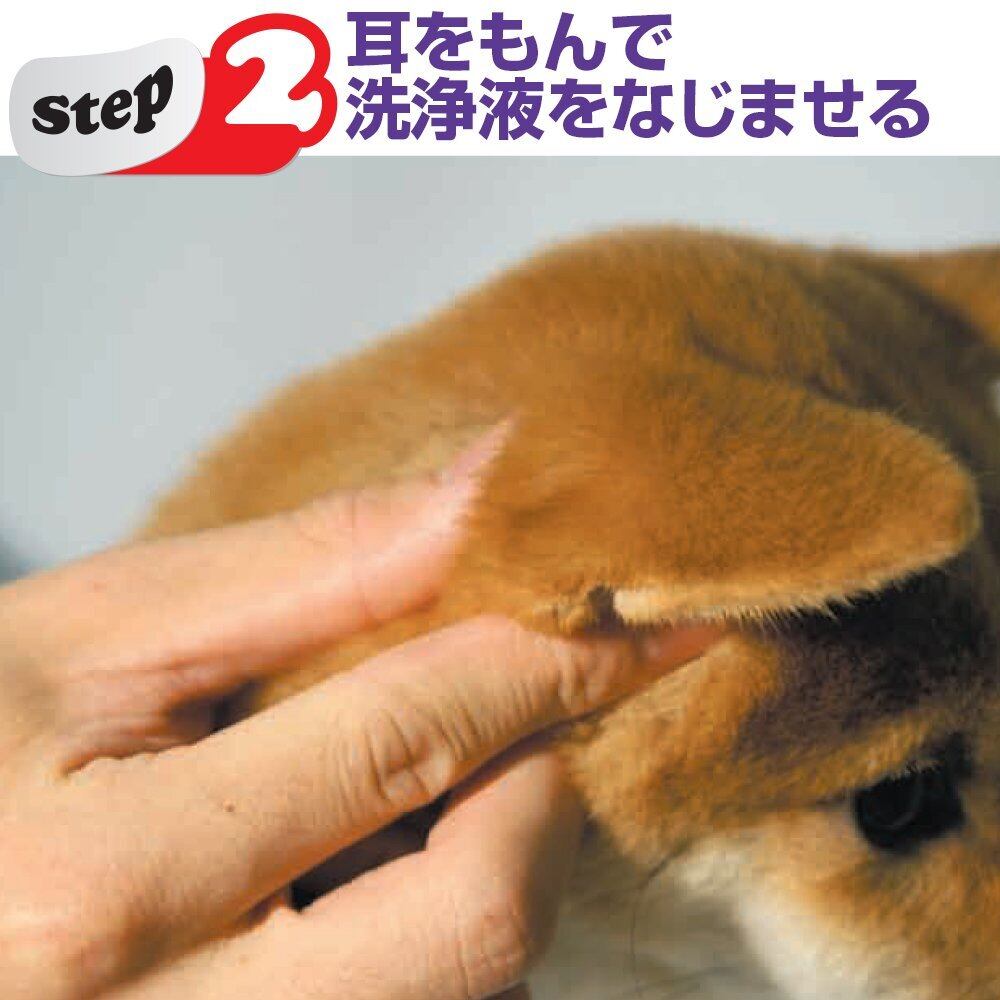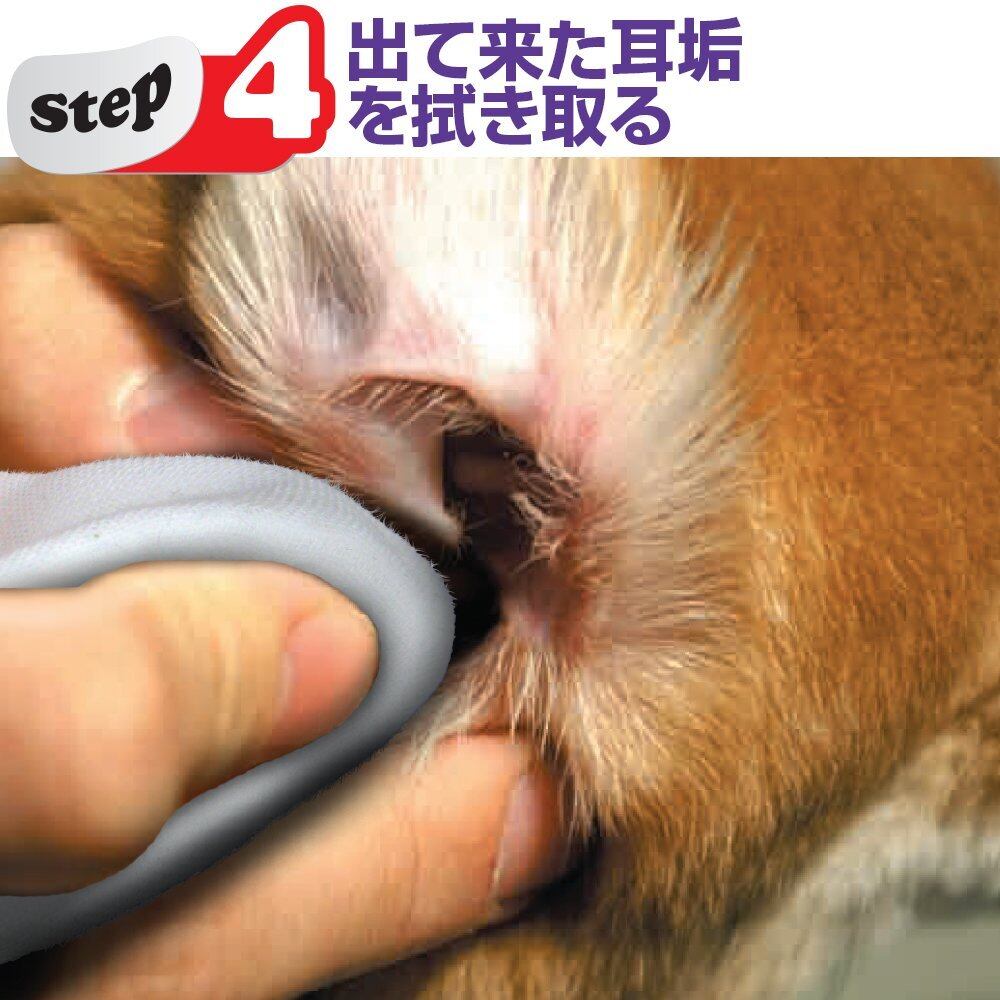 通常は1週間に1回の割合でお使い下さい。シャンプー後にもお使い下さい。超小型犬1~3滴、小型犬3~5滴、中型犬5~7滴、大型犬7~9滴を目安にお使い下さい。1,耳の中に本剤を直接入れて、耳アカに馴染むように耳の付け根を外側から軽く揉みます。愛犬に頭を振らせます。2,耳アカが多い場合は、1分間程度頭を振らせず馴染ませて下さい。3,付属の綿棒やコットンで汚れを取り除いて下さい。