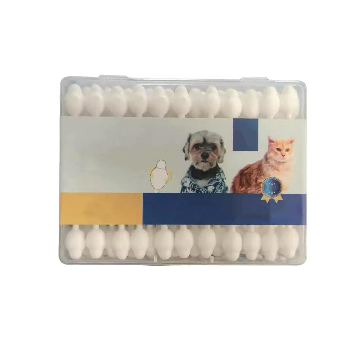 ペット専用のひょうたん型ダブルエンド綿棒100本セット:両端使い分け設計で、犬・猫の耳の凹凸にしっかりフィット。たっぷり100本入りで日常の耳掃除に最適です。