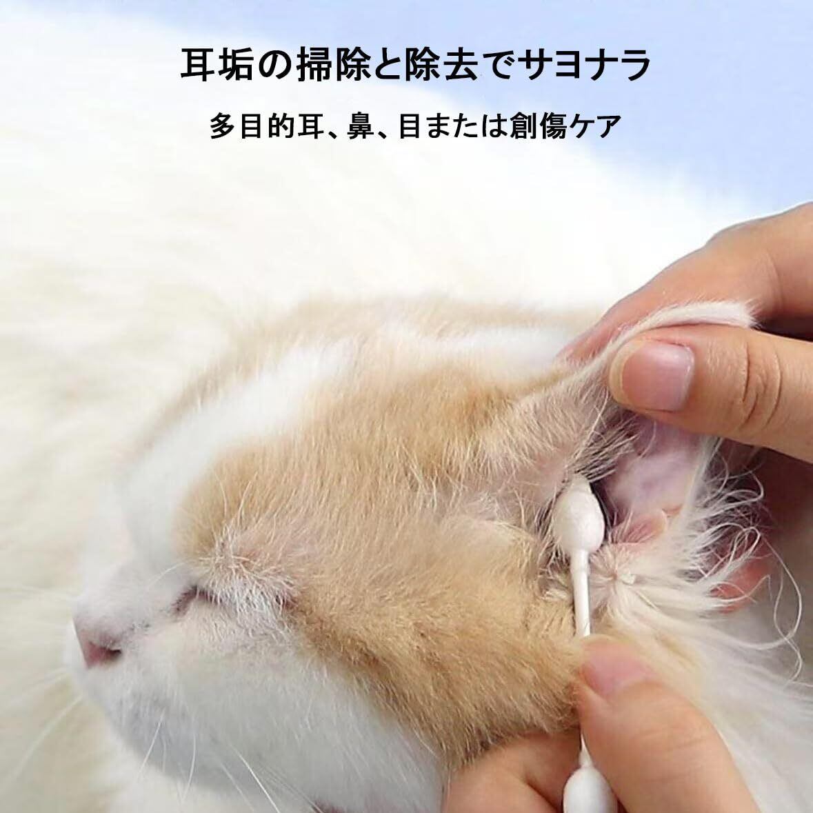 肌に優しい極細コットン使用:デリケートな耳内部を傷つけない柔らか素材。ペットが嫌がらずに安心して耳掃除ができます。