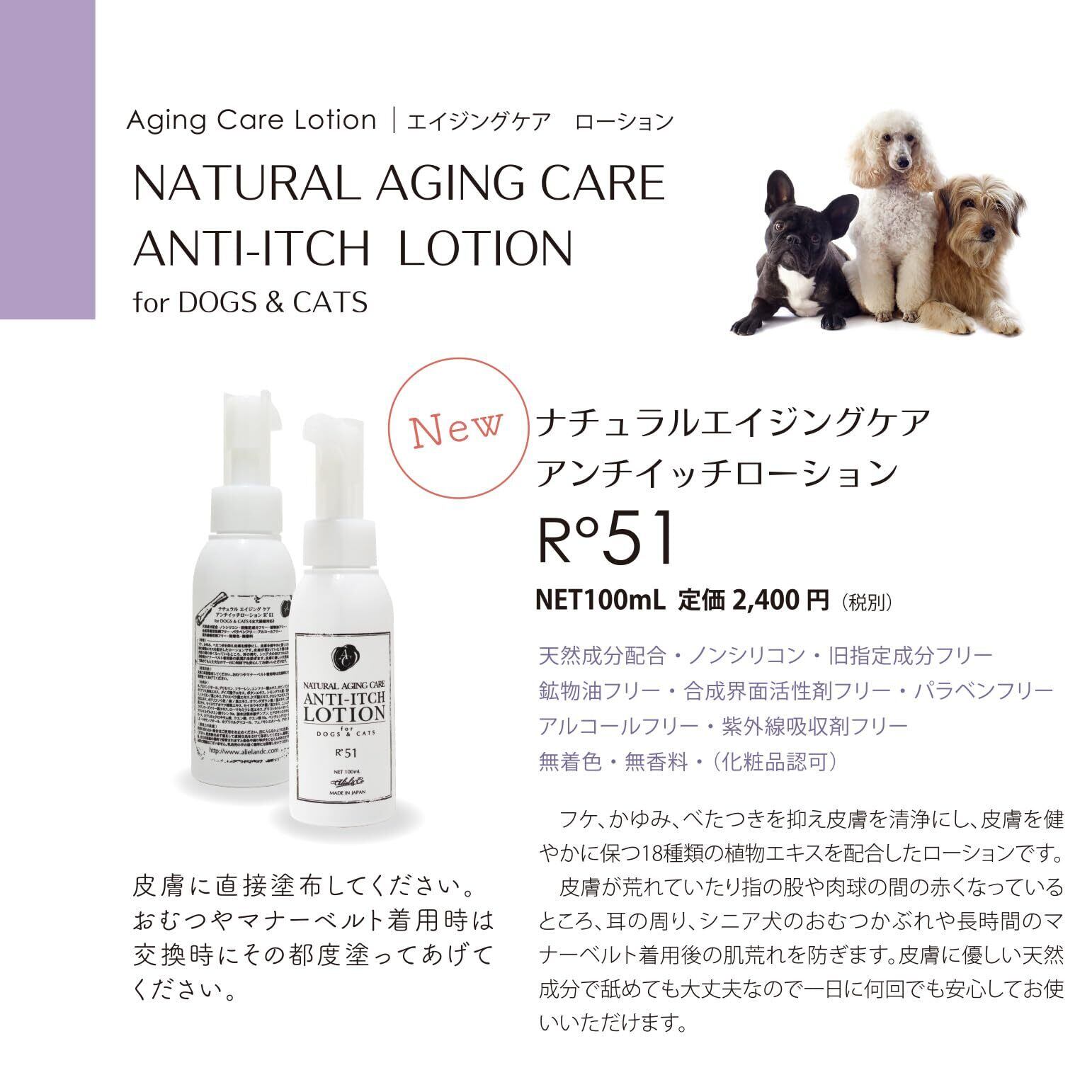 [Natural Aging Care Series]ナチュラルエイジングケア(全犬種・全猫種対応)ふけ・赤み・痒み・かぶれ対応肌荒れ用アンチイッチローションR51/100ml