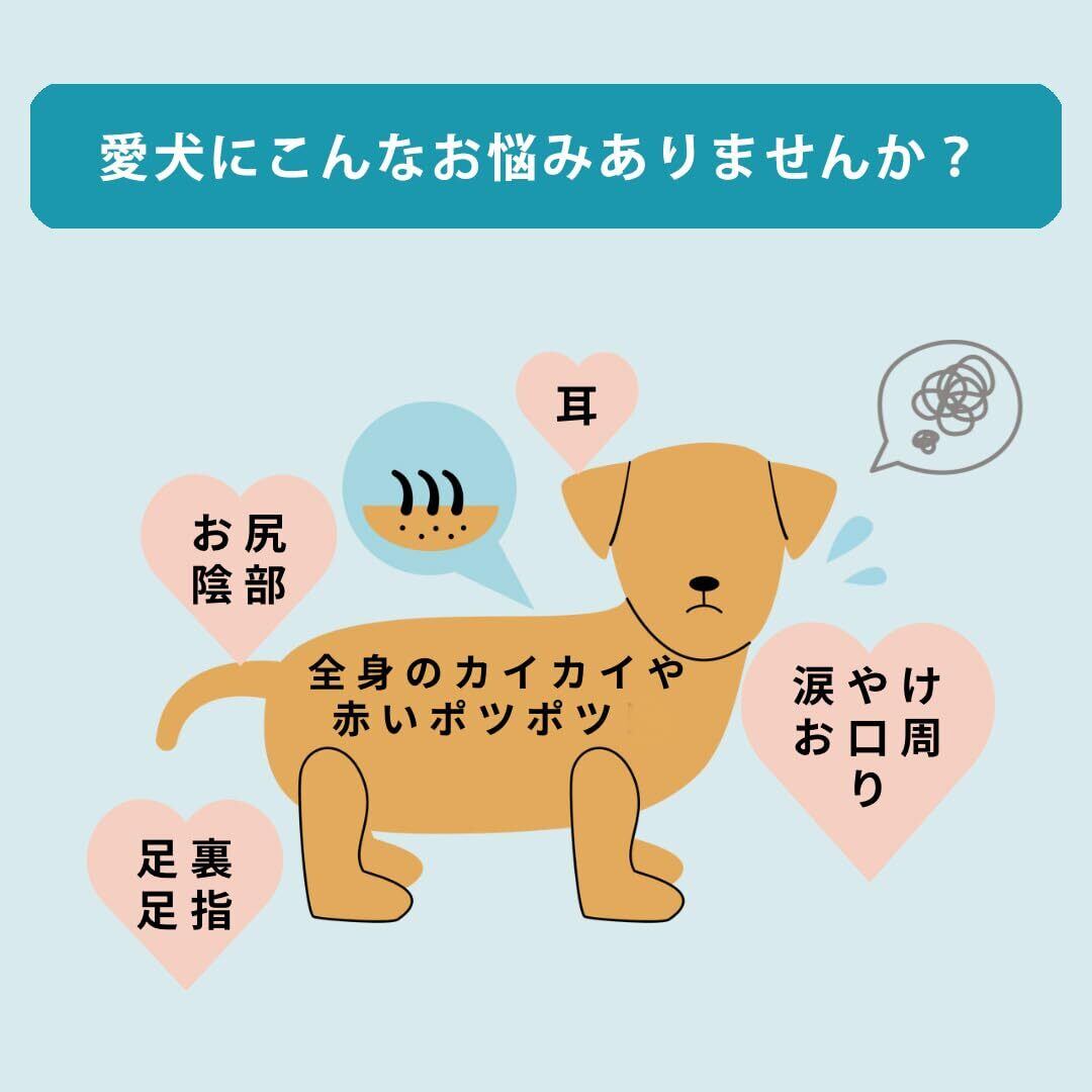 【使用上の注意】犬の皮膚に合わない場合は、ご使用をお止めください。使用後はふたをして直射日光を避けて保管してください。極端に高温、または低温の場所で保管されますと変色や濁り等が生じることがありますが品質には問題はございません。乳幼児の手の届く場所には保管しないでください。