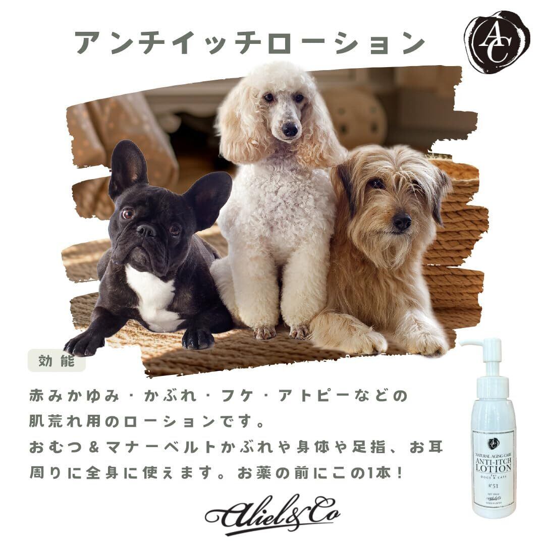 aliel&co ペット用 ふけ 赤み 痒み かぶれ対応肌荒れ用 アンチイッチローション 舐めても安心 天然成分 18種類の植物エキスを配合 全犬種・全猫種対応 R51/100ml