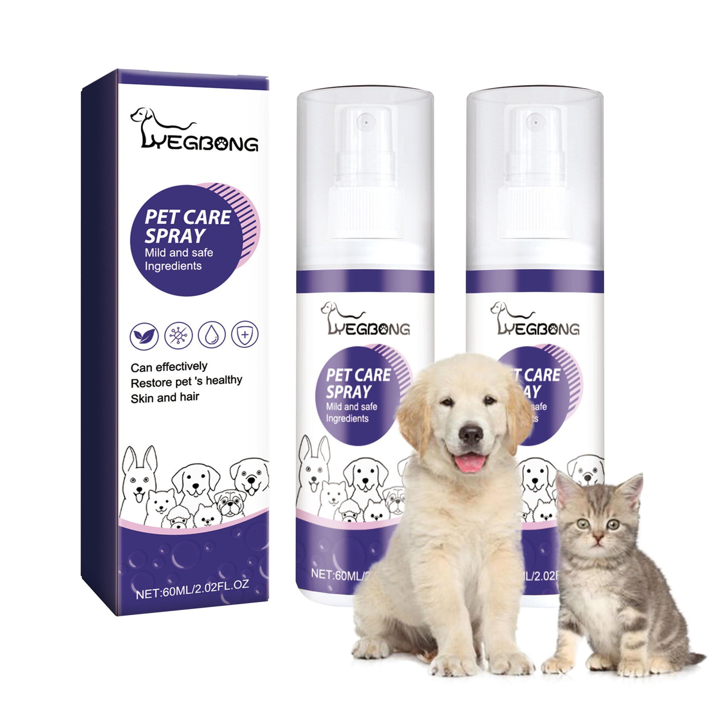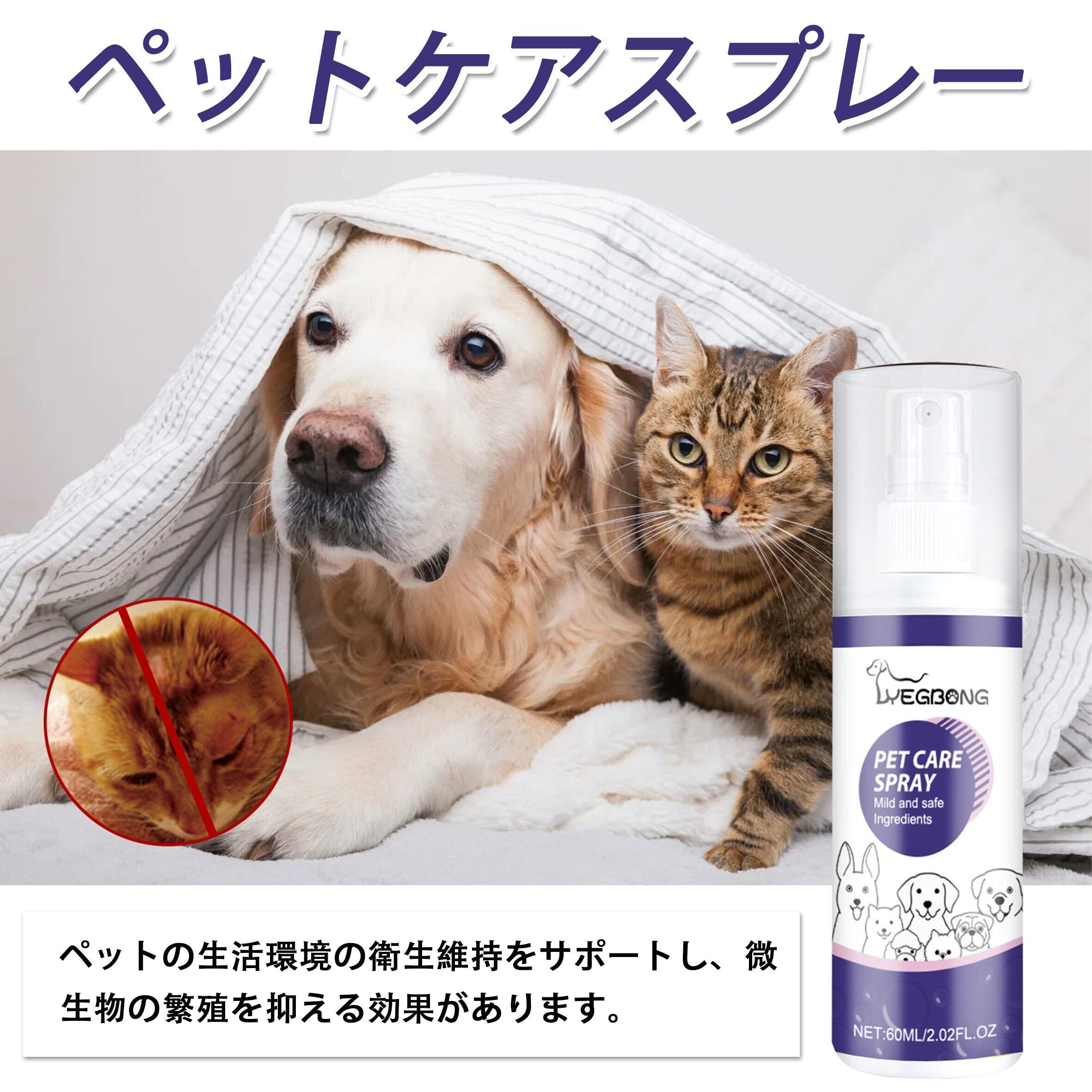 ペットケアスプレーペット・ペット創傷スプレー,ペット猫犬苔スプレー 犬猫の皮膚傷ケア皮苔の皮膚のかゆみケアスプレー 2個