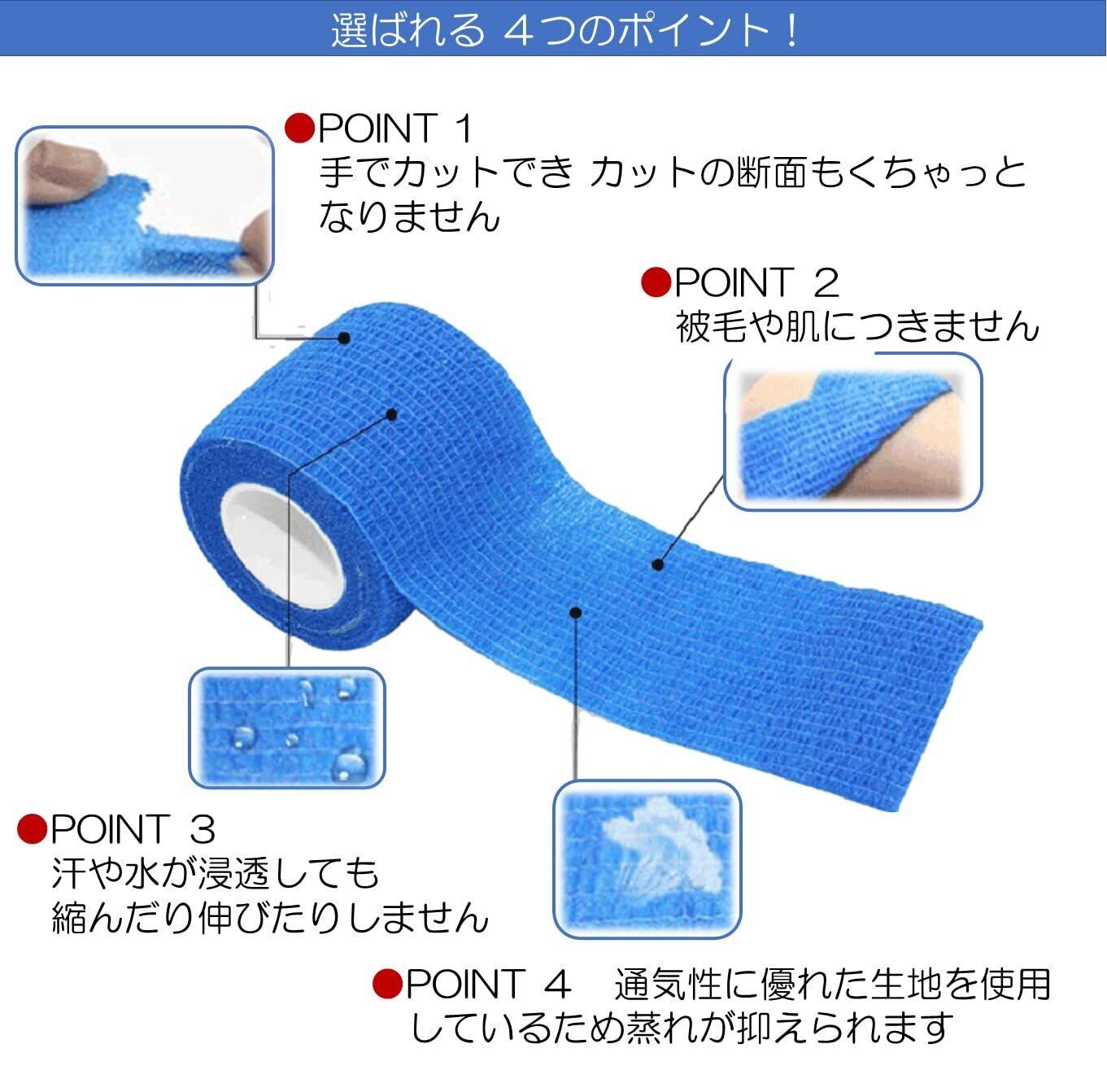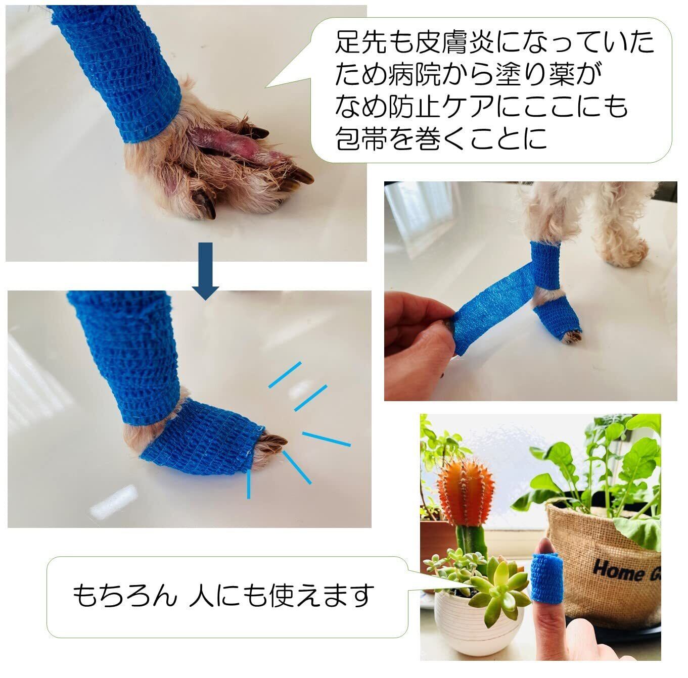 ペットがケガをした時の傷なめ防止や、病院へ行かなくても自宅で簡単に巻きなおしができる、伸縮性に富んだ伸縮するくっつく包帯です