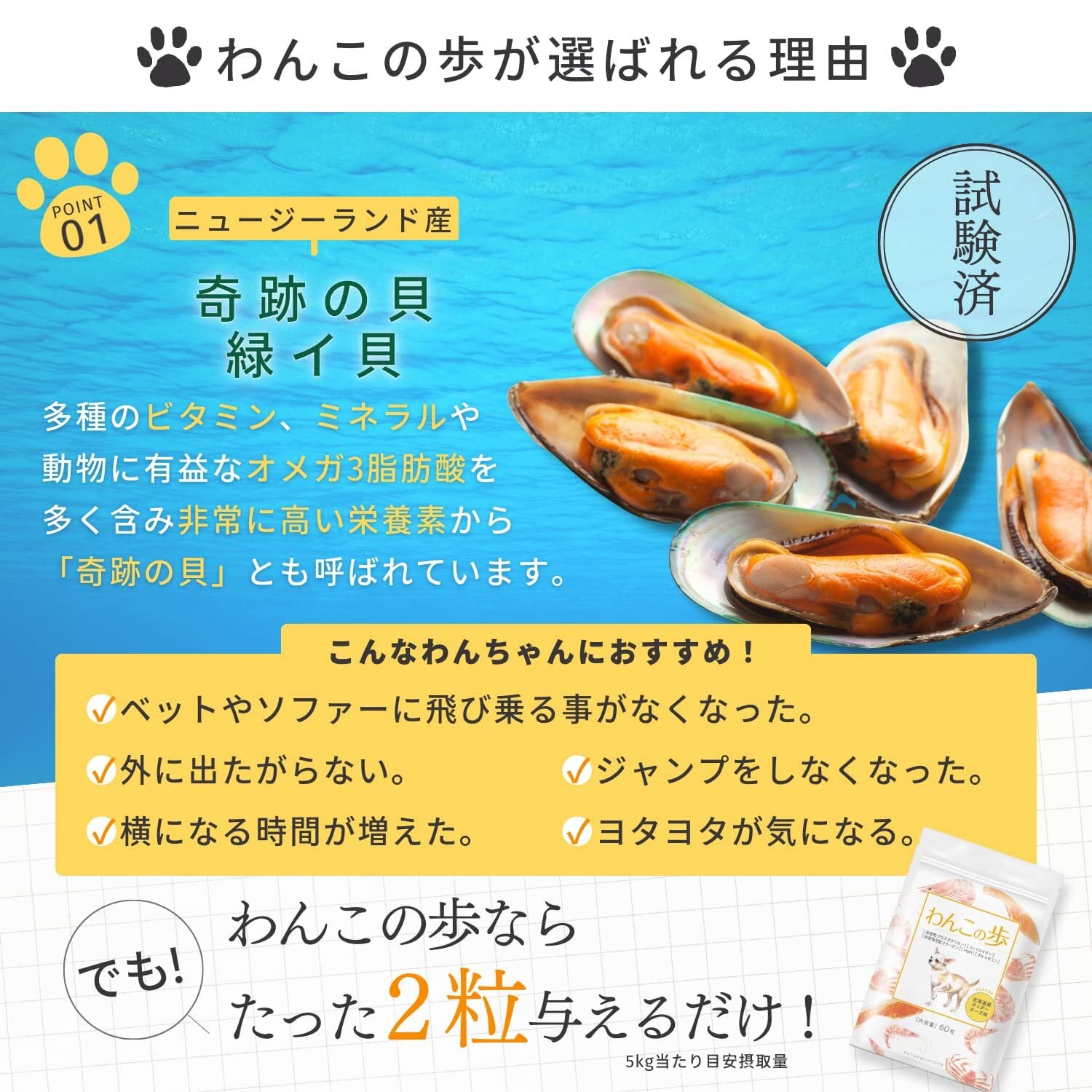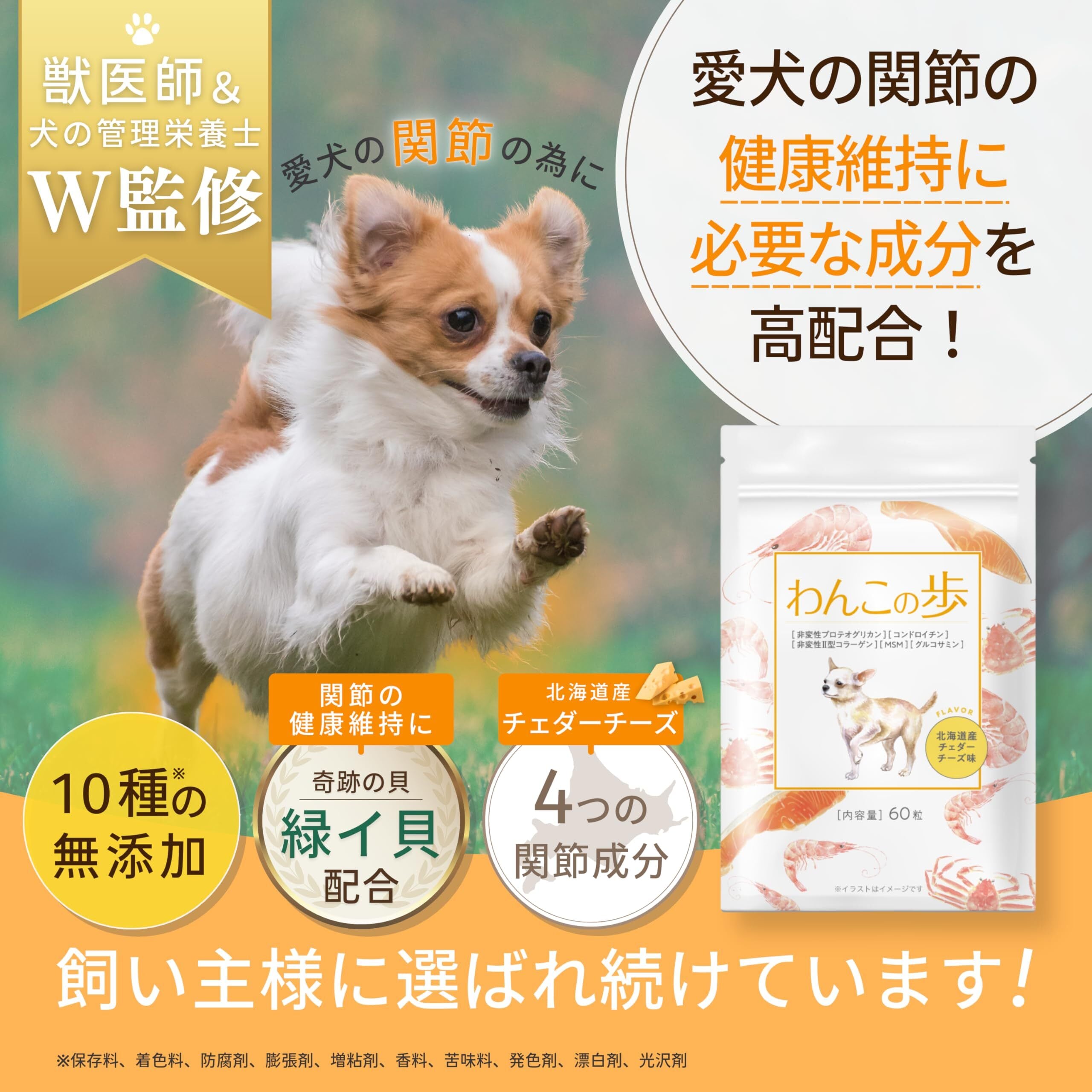 【獣医師監修】わんこの歩 犬 猫 ペット サプリ 関節 散歩 関節ケア 国産 無添加 60粒 緑イ貝 プロテオグリカン グルコサミン コンドロイチン コラーゲン