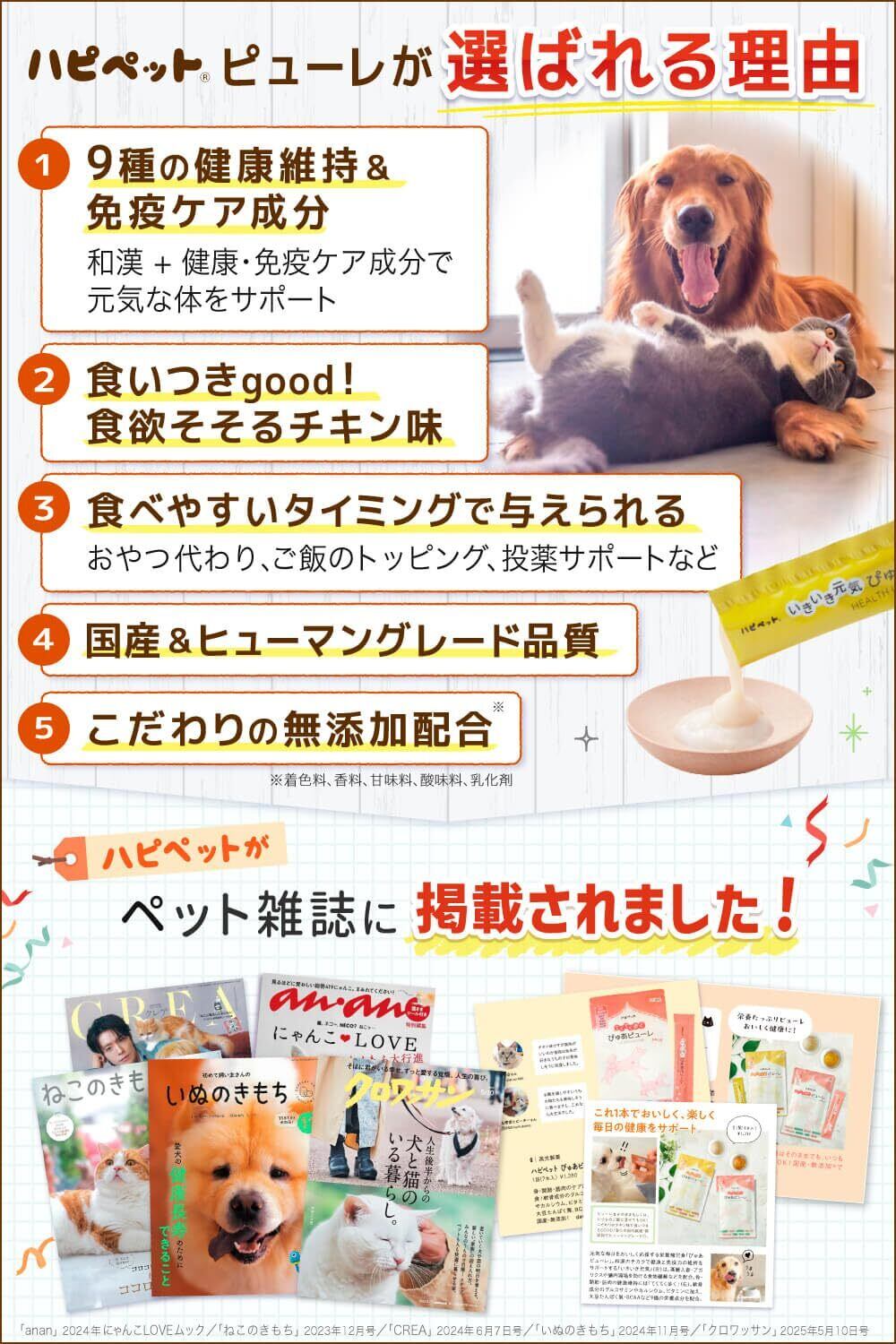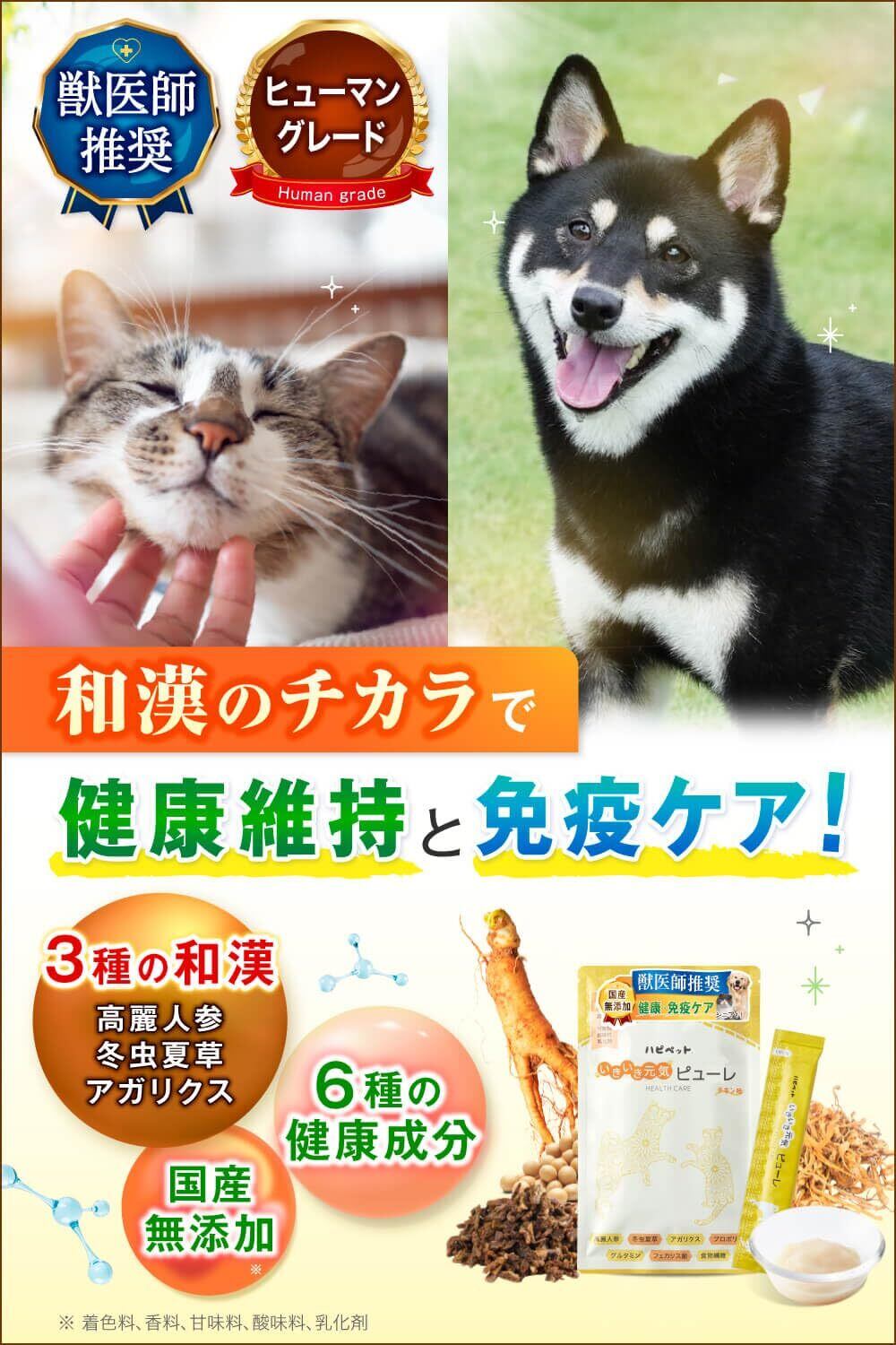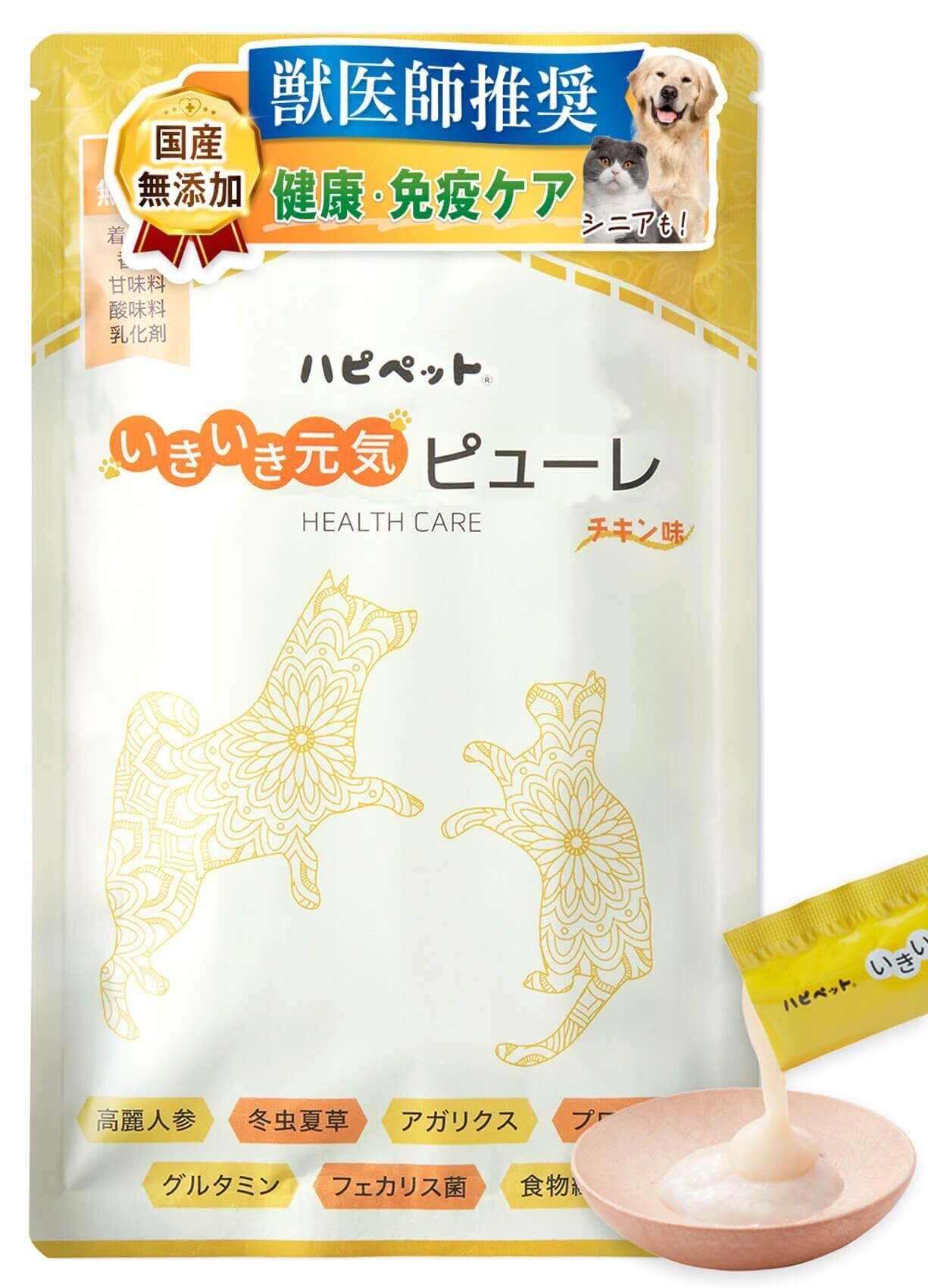 【獣医師推奨】 ハピペット 犬 猫 ピューレ 7本 健康 栄養 無添加 高麗人参 冬虫夏草 乳酸菌 食物繊維 シニア 高齢 国産 いきいき元気