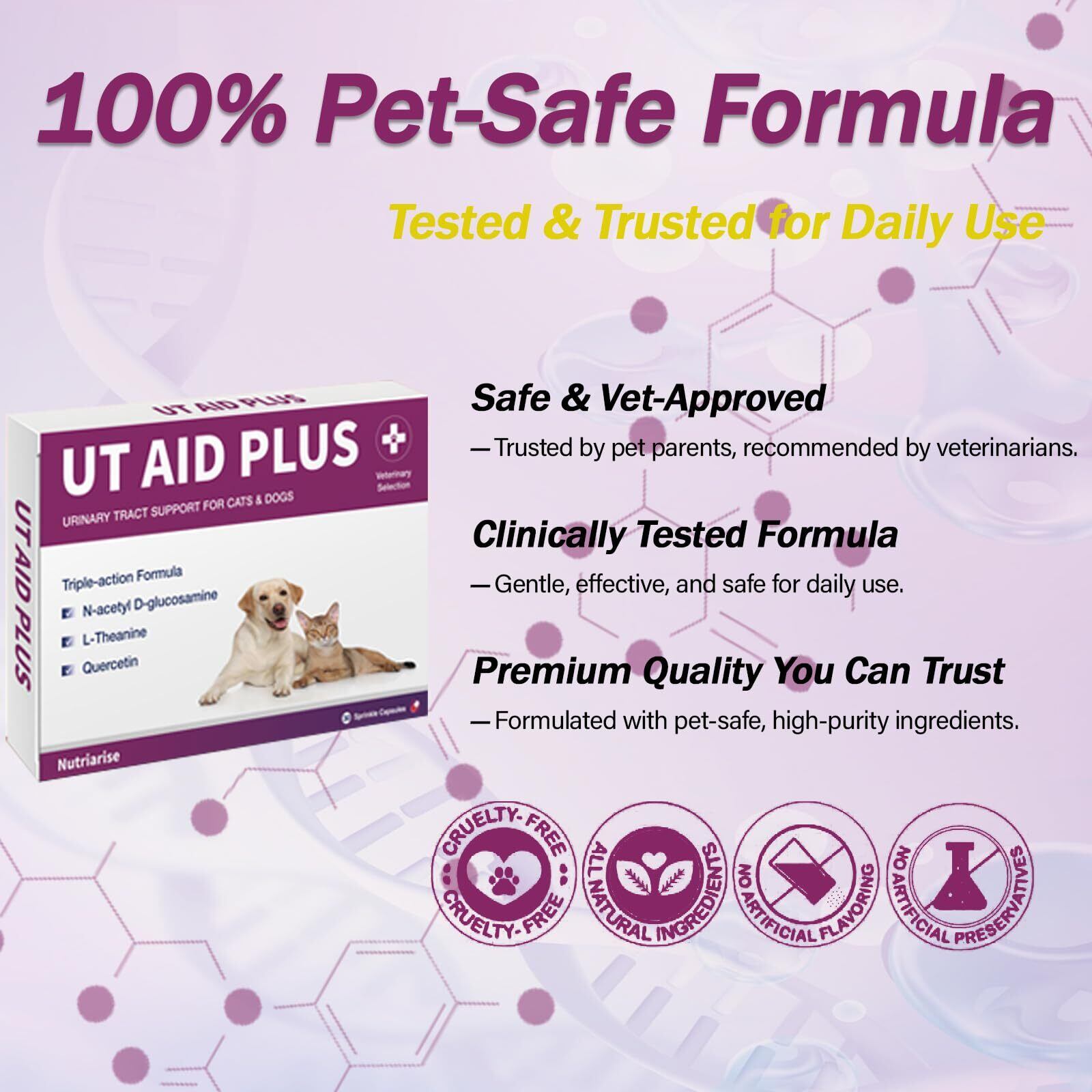 【NUTRIARISE】猫・犬用 UT AID Plus|膀胱炎・尿路結石・頻尿に対応|避妊・去勢後ケア|ナチュラル成分配合|30カプセル