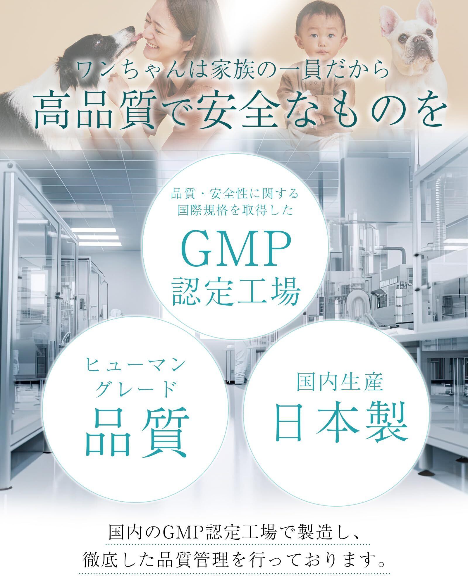 安心安全のヒューマングレード:原材料から製造工場、包装フィルムまで、すべてが国際安全基準をクリアした日本製(国産)