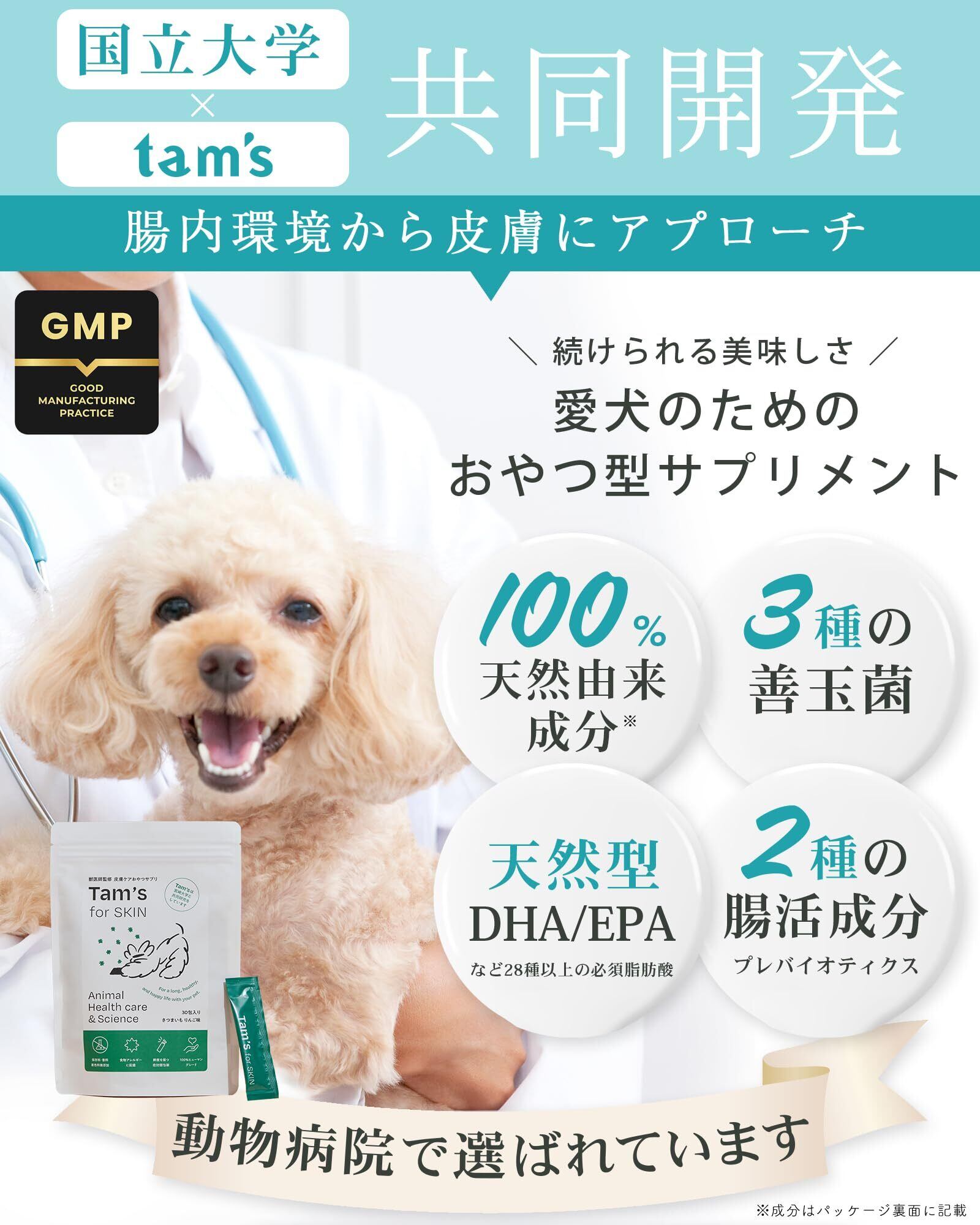 【動物病院×tam's共同開発】犬 皮膚 おやつ サプリ かゆみ 乳酸菌 酪酸菌 腸活 便臭 さつまいもりんご味 7包