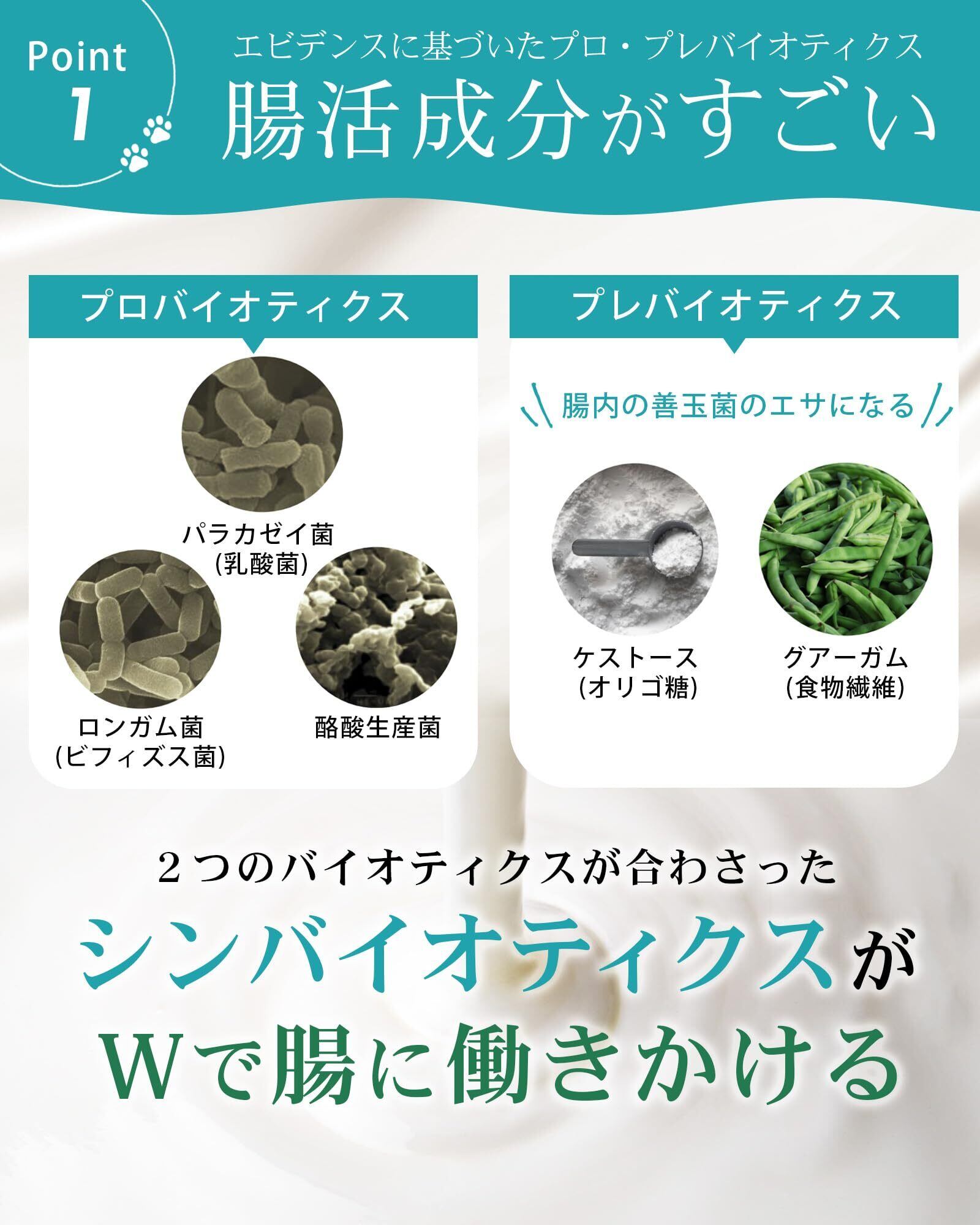 腸内フローラの乱れた犬の免疫バランスを健康に保つ乳酸菌(パラカゼイ菌)、ビフィズス菌(ロンガム菌)、酪酸生産菌を高濃度で配合
