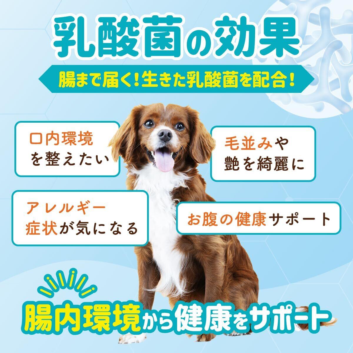 【内側から愛犬の健康をサポート】 ヒューマングレード品質の乳酸菌配合サプリメント(チーズ味)です。腸まで届く乳酸菌や、愛犬の健康維持に欠かせない成分を含み、元気をサポートします。シニア犬やデリケートなお腹を持つワンちゃんにも最適です。