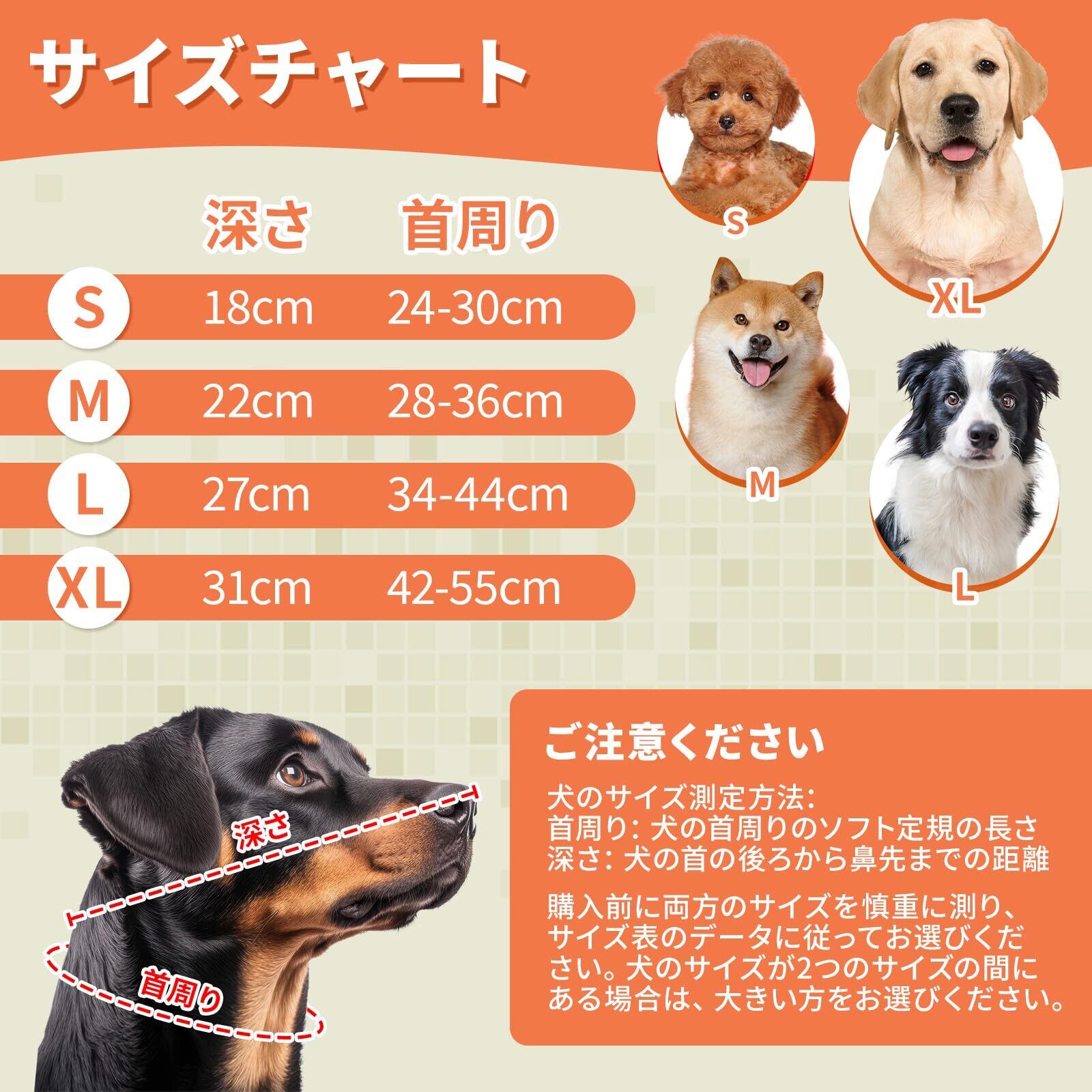 犬のほとんどのサイズに適しています:このエリザベスカラー 犬 ソフトは、あなたが選択するための4つのサイズ(S、M、L、XL)があり、犬のほとんどのサイズに適して、ご注文の前に慎重にあなたの犬のサイズを測定し、サイズチャートに対してそれを選択してください、あなたの犬のサイズが2つのサイズの間に位置している場合は、大きいサイズを選択してください、あなたがサイズを選択する方法がわからない場合は、お問い合わせください