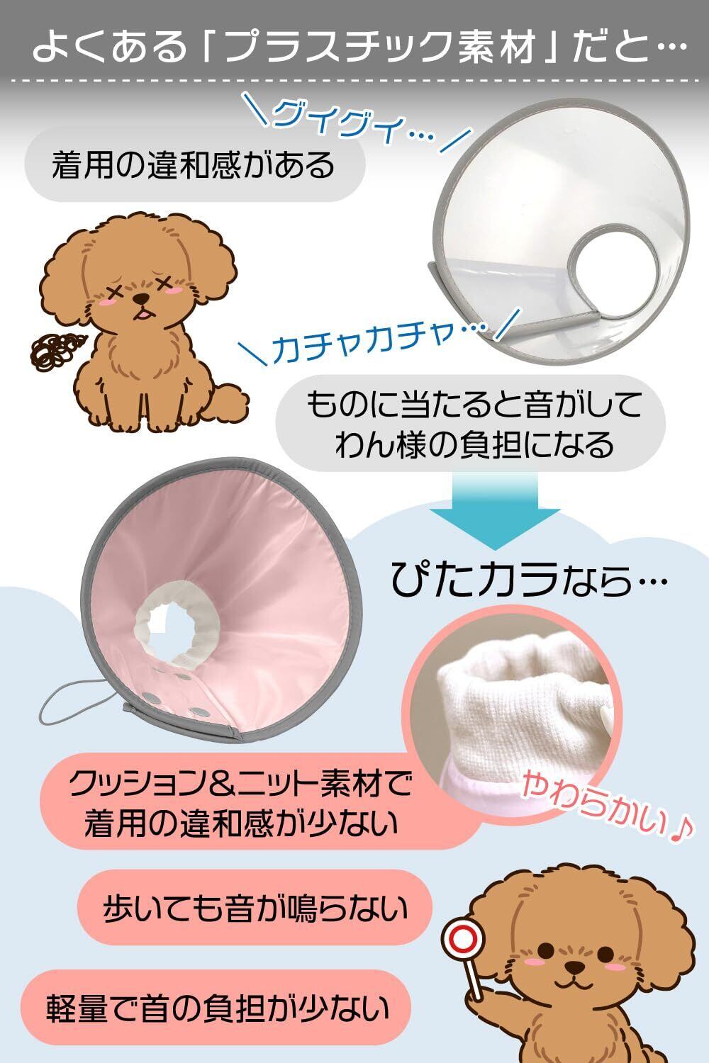 エリザベスカラー (ぴたカラ)【獣医師×トイプー2匹の愛犬家監修】小型犬専用x軽量で音がしないモデルxソフトタイプx術後のケア用品 (フェアリーピンク, Mサイズ(2kg以上~6㎏))