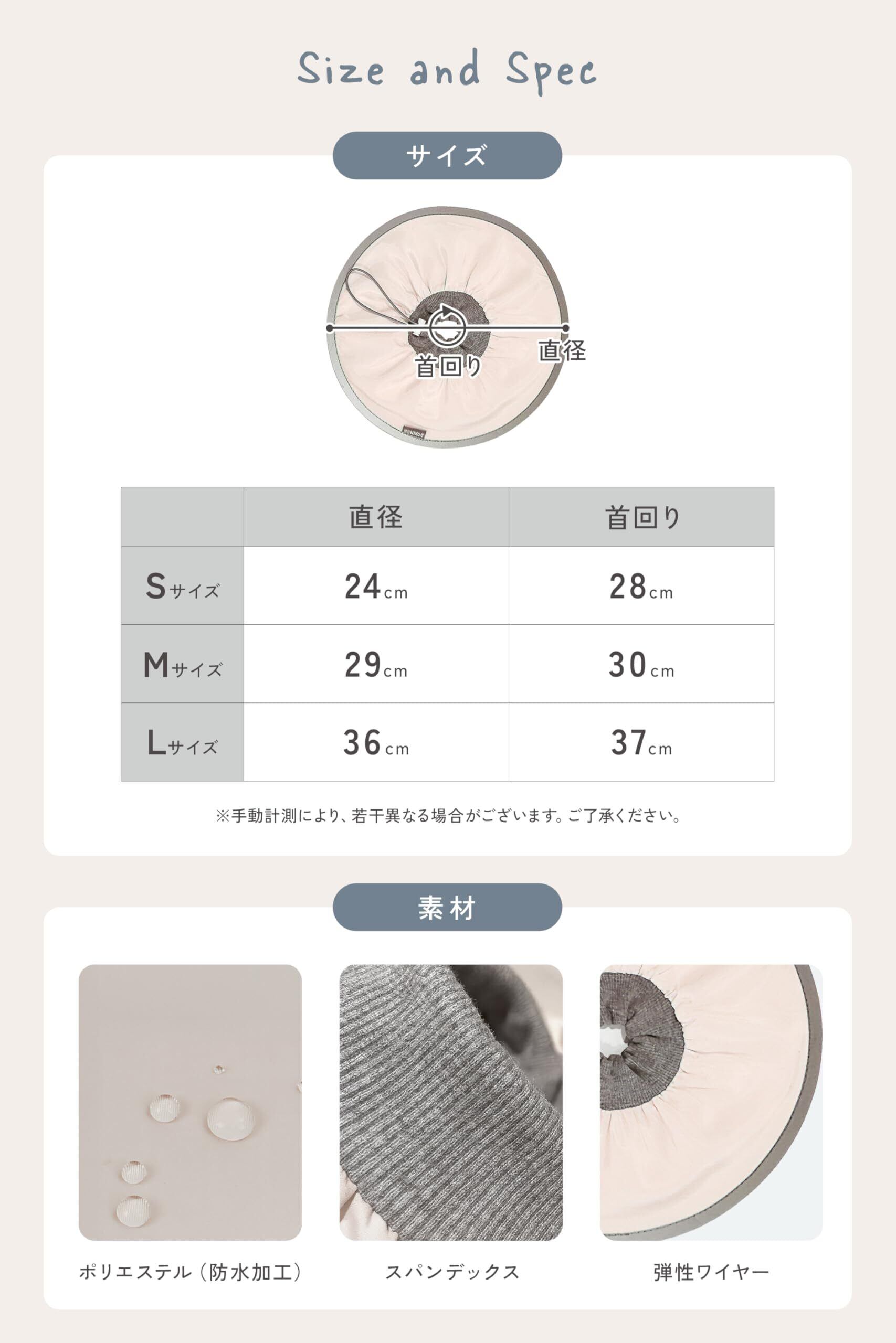 【仕様詳細】 サイズはS・M・Lの3サイズ展開。犬・猫兼用で使用可能。素材はポリエステル(防水加工)、スパンデックス、弾性ワイヤー。日常ケアや術後の舐め防止など、幅広いシーンで活用できます。