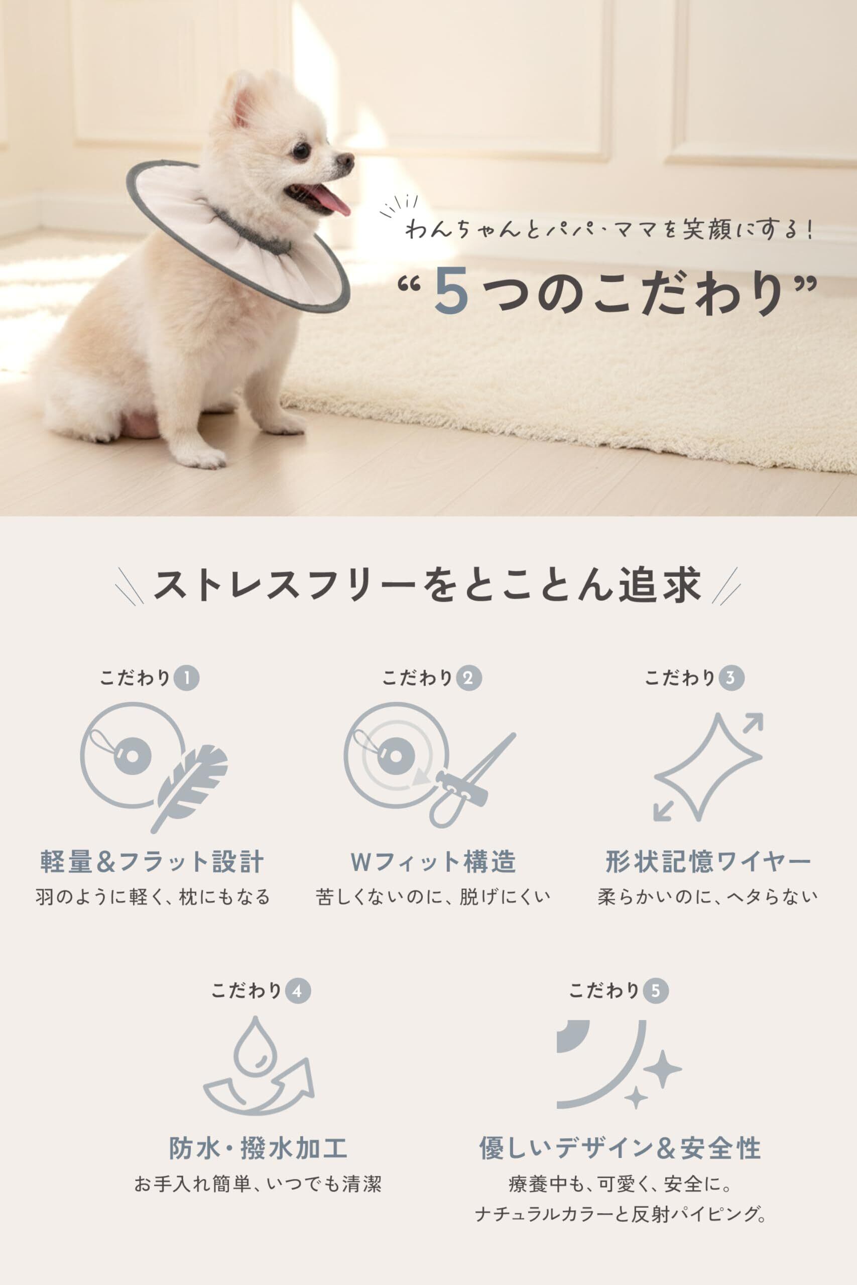 [いぬのくらし] 犬 エリザベスカラー 傷舐め防止 小型犬 猫 術後 軽量 撥水 約30g 4カラー 3サイズ展開 (アイボリー, L)
