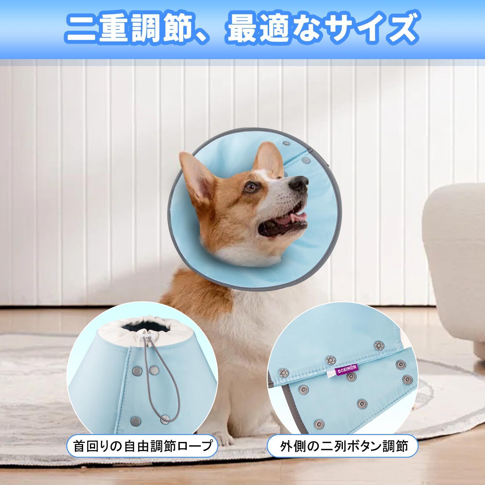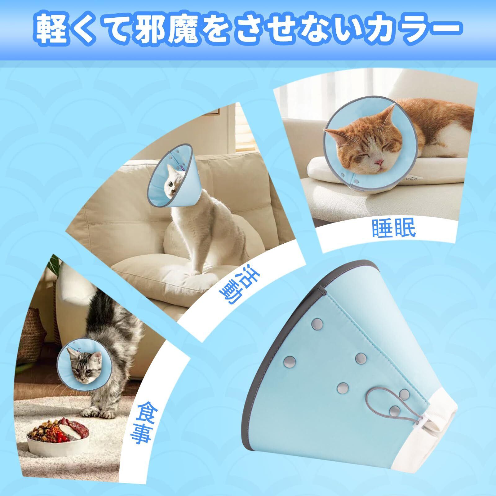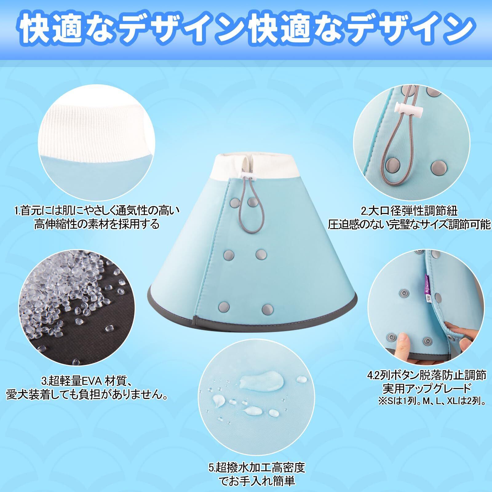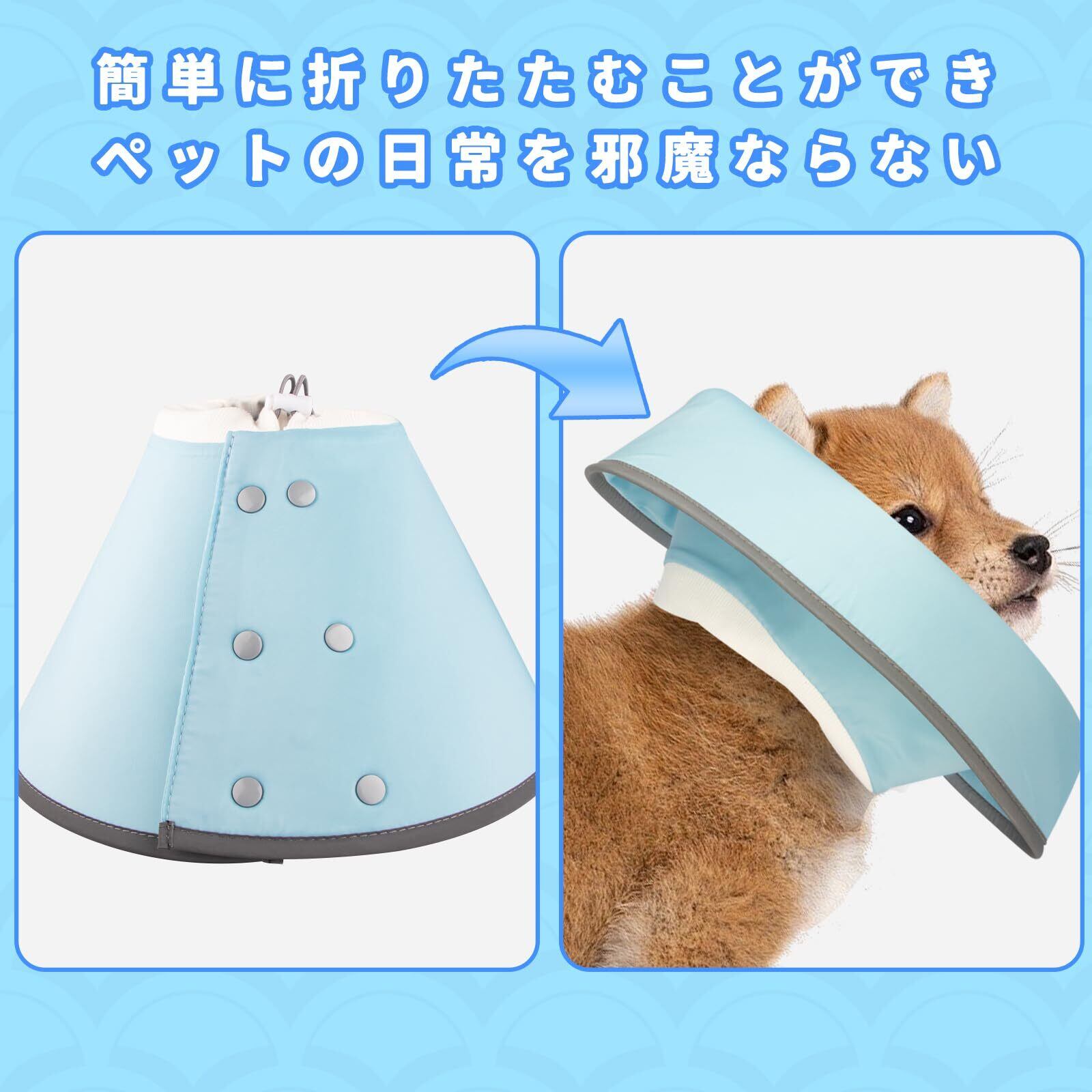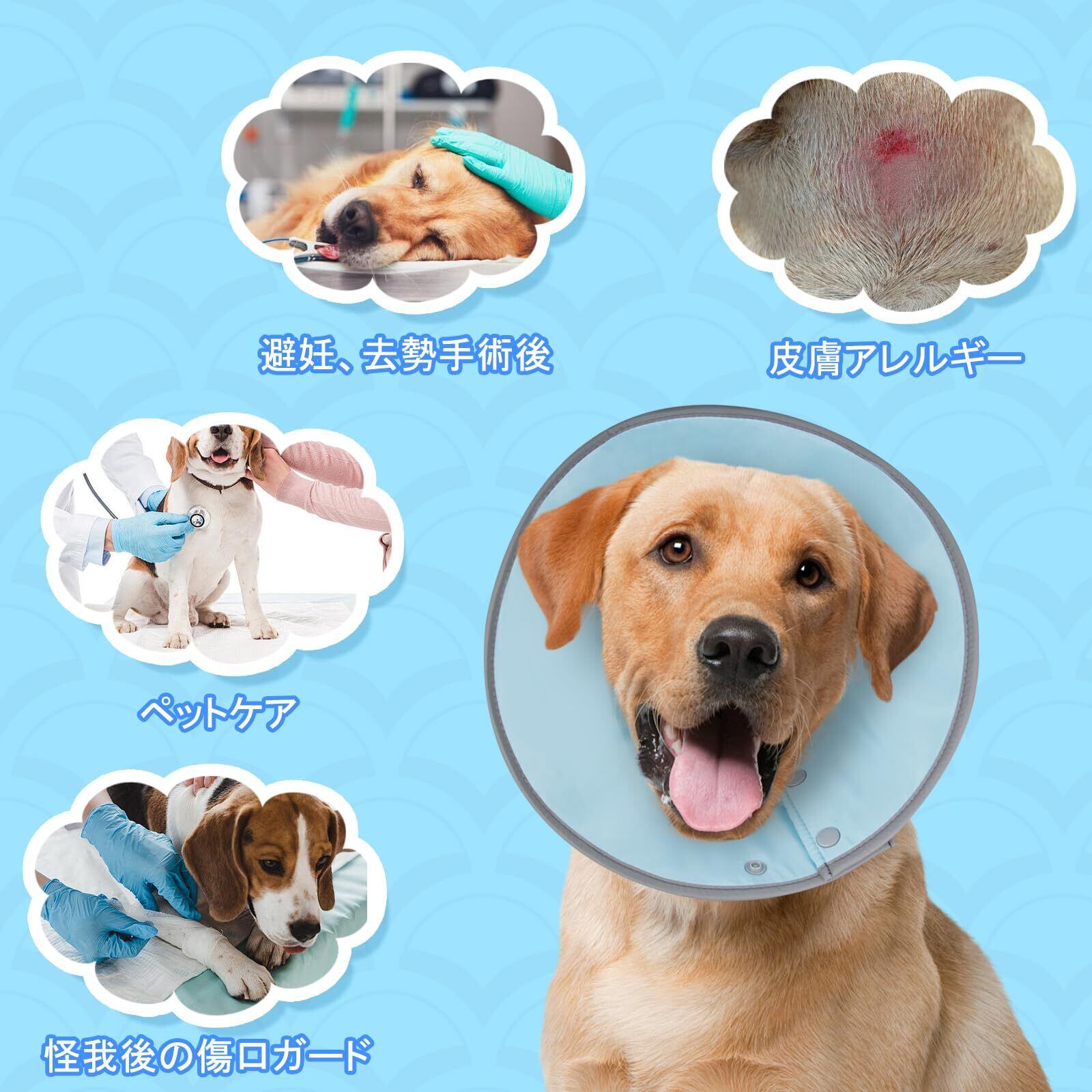 OYANTEN エリザベスカラー 犬 猫 ソフト 軽量 カラー 防水タイプ ボタン 柔らか 調整可能 洗える 引っ掻き防止 爪切り 足舐め防止 傷舐め防止 皮膚病 傷口保護 去勢手術 術後対応 避妊 ケア ストレスフリー 超小型犬 小型犬 中型犬 猫(S M L XL ブルー) (ブルー, M)