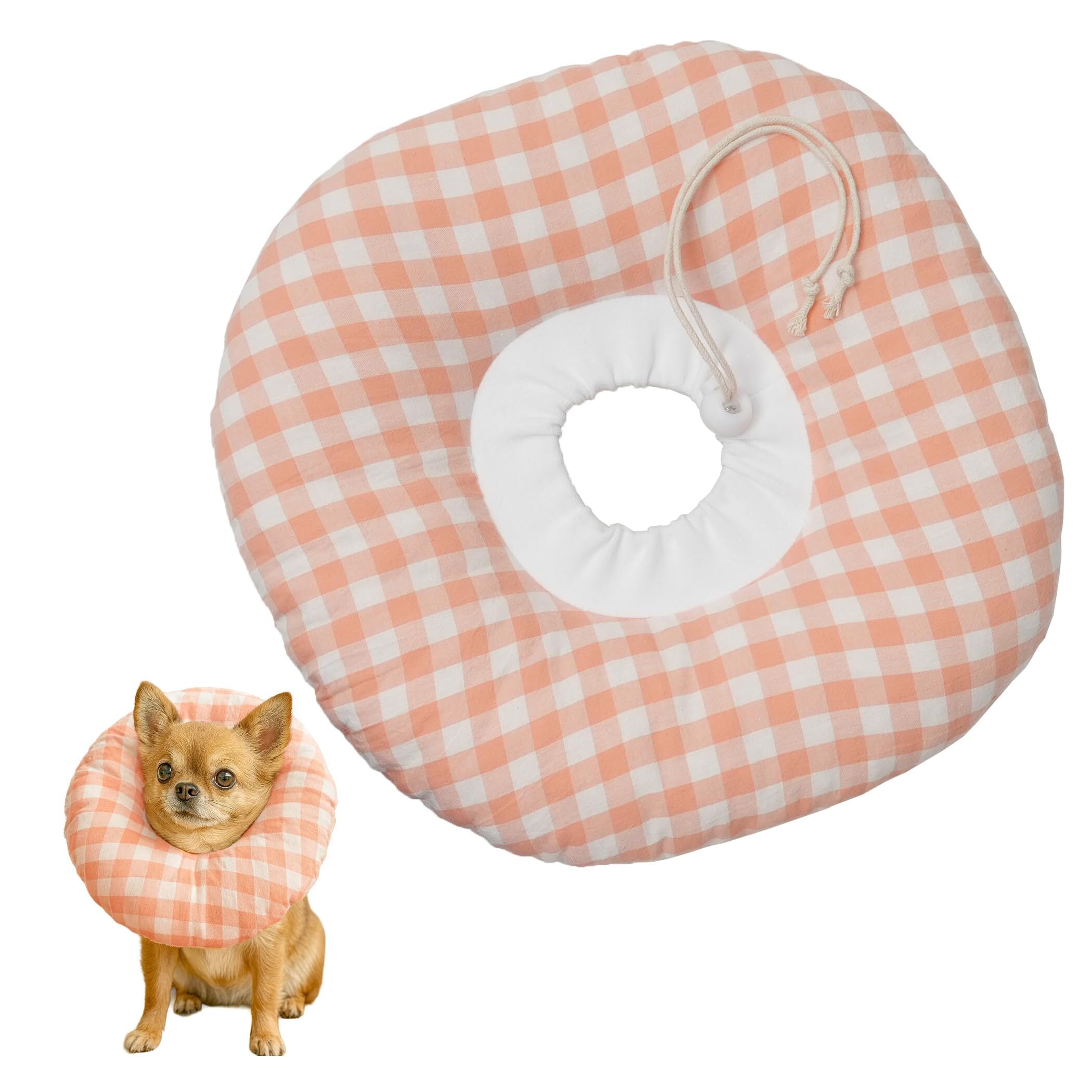 [いぬのくらし] 犬 エリザベスカラー 柔らかい 傷舐め防止 小型犬 猫 術後 軽量 撥水 コットン素材 洗濯可能 3カラー 3サイズ展開 (アプリコット(ギンガムチェック), L)