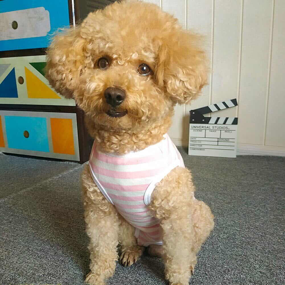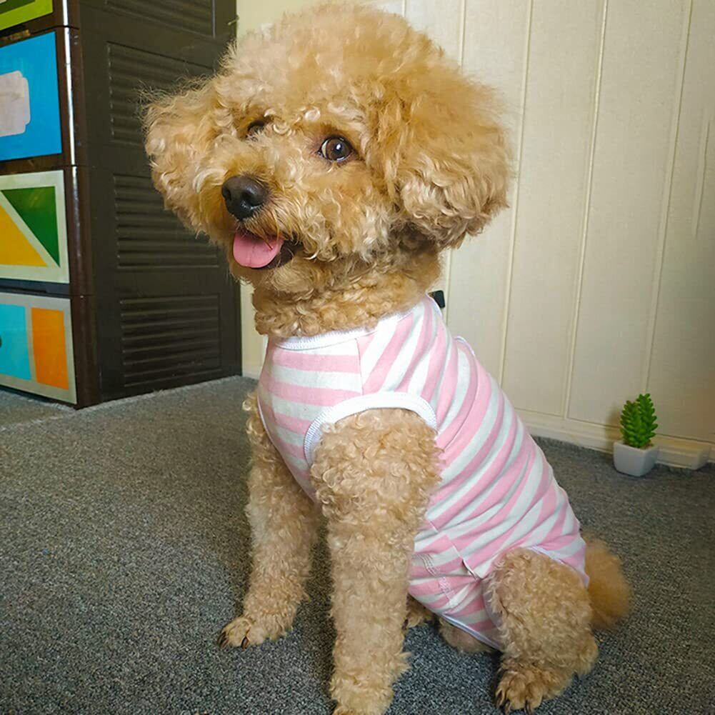 KUVEELA PET 術後服 犬 服 犬用品 術後ウェア 術後カバー服 エリザベスカラーの代わる 保護服 雄 雌兼用 避妊 離乳 傷口保護 皮膚病 通気 夏用 小型犬 中型犬(S、ピンクボーダー)