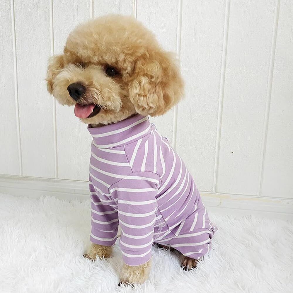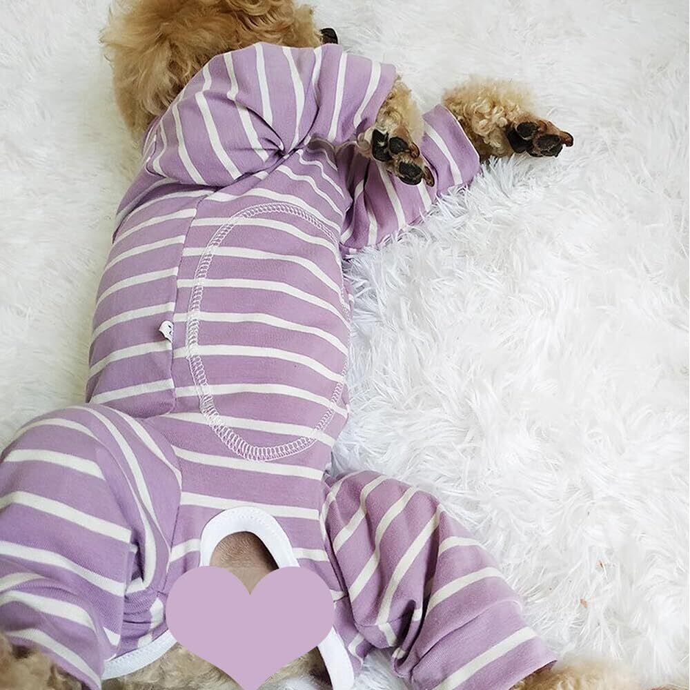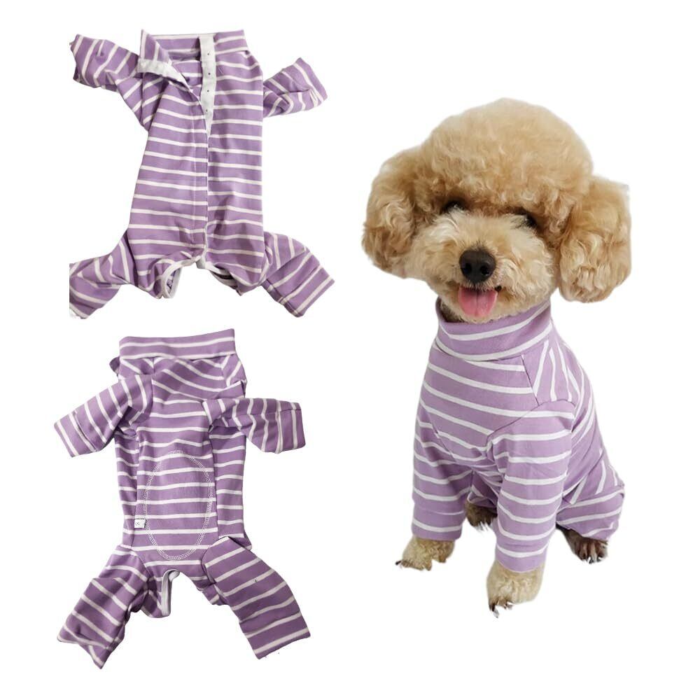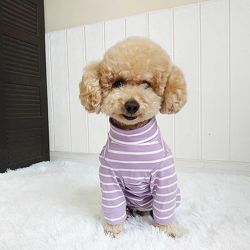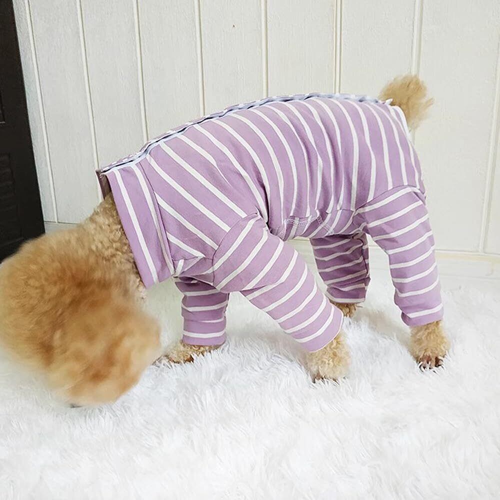 YBGGJO 術後服 犬 術後ウェア 介護服 オス メス 兼用 避妊手術後 傷舐め 離乳 傷口保護 皮膚保護 長袖 通気 虫よけ対策 抜け毛対策 小型犬 中型犬 (パープルボーダー, S)