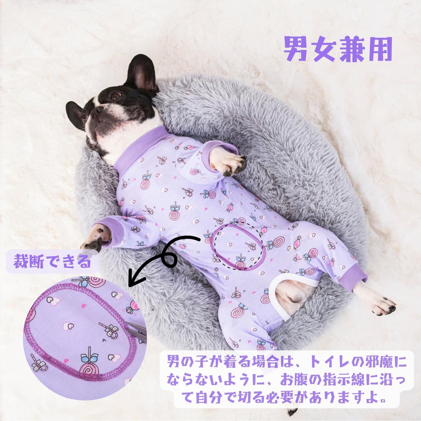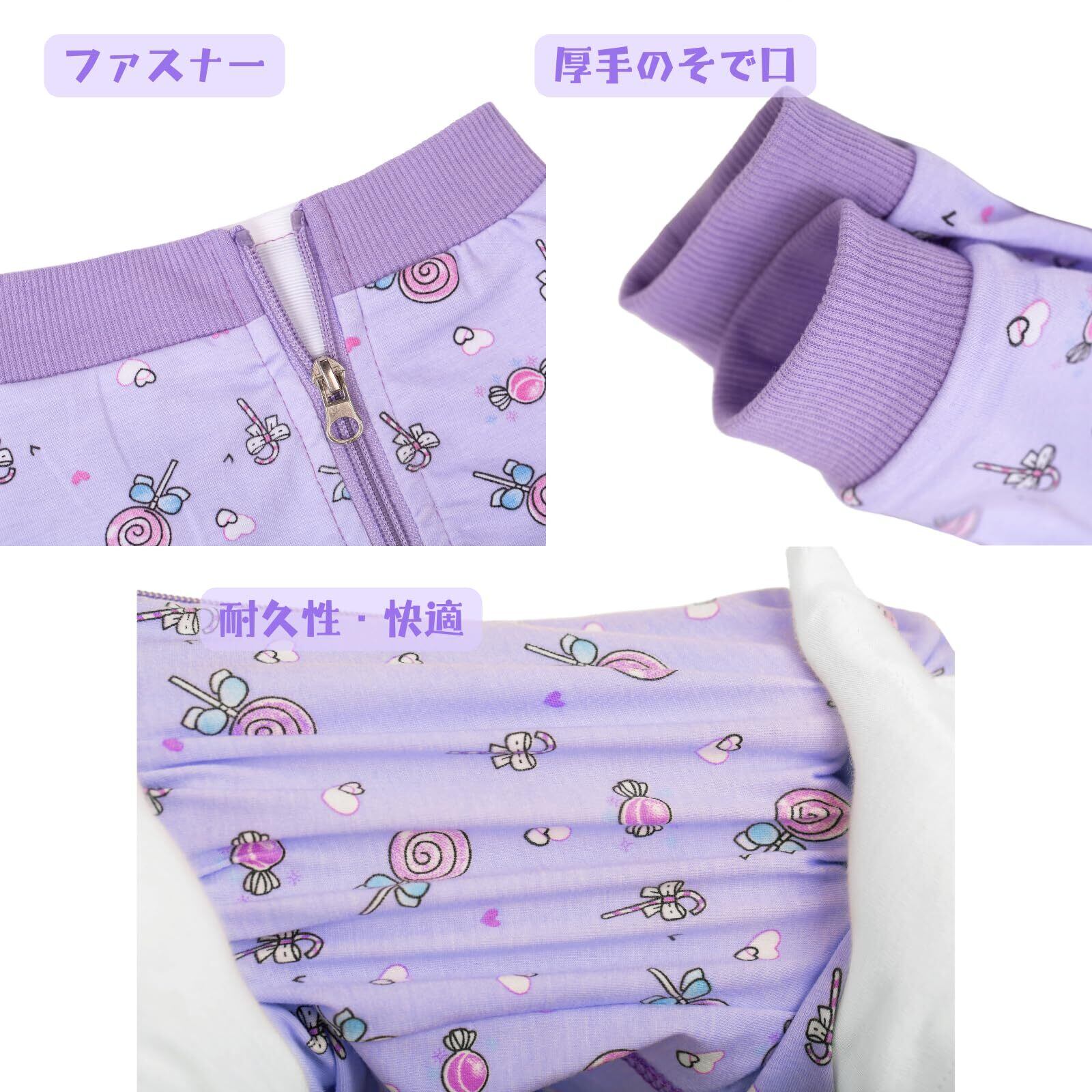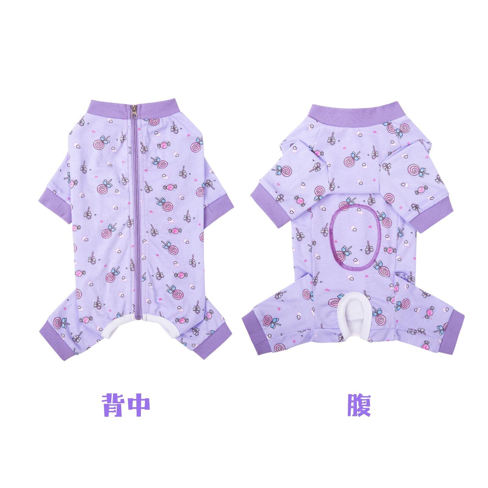 MEIAOJIA 犬服 犬 小型犬 術後服 寝間着 長袖 犬術後服 ジャンパー着 男女兼用 犬 介護服 離乳服 皮膚保護 傷舐め 引っ掻き防止 子犬 柔らかい 通年 紫ペロキャン L