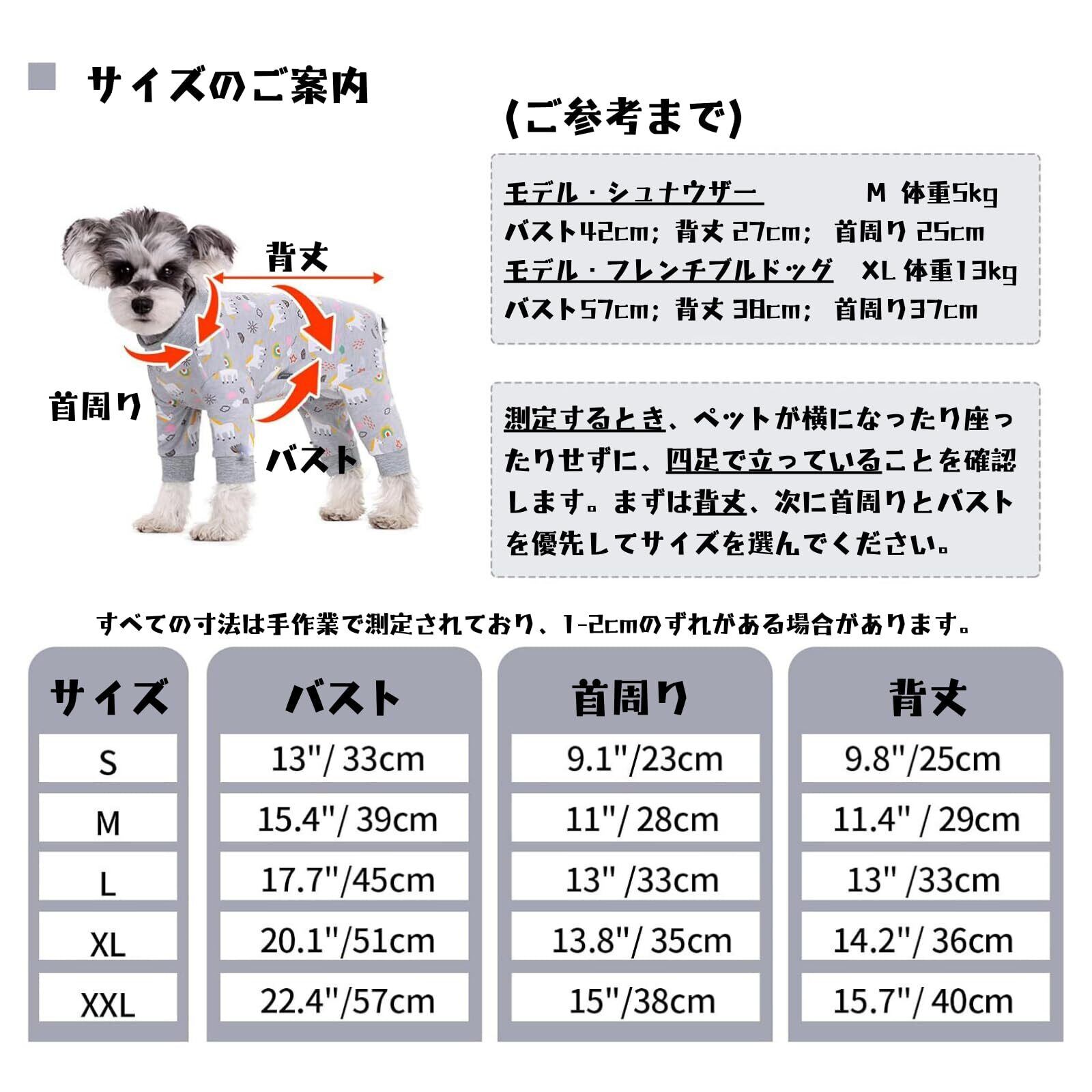 XXL:バスト:57cm以内;背丈:40cm;首周り:38cm;