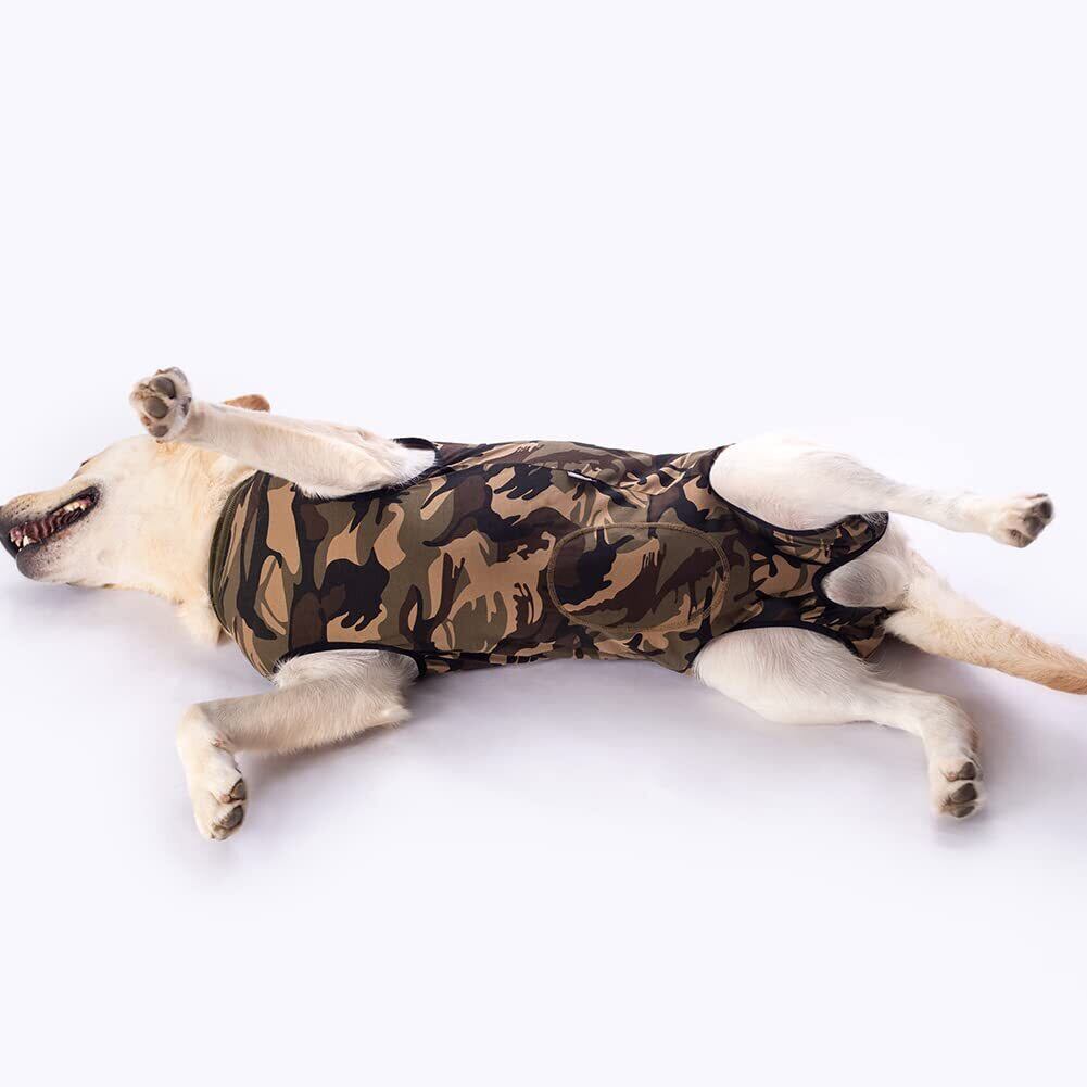 KUVEELA PET 術後服 犬服 犬術後服 術後ウェア 術後カバー服 保護服 介護服 避妊 離乳 傷口保護 皮膚病 大型犬 中型犬(グリーン・迷彩 4L)