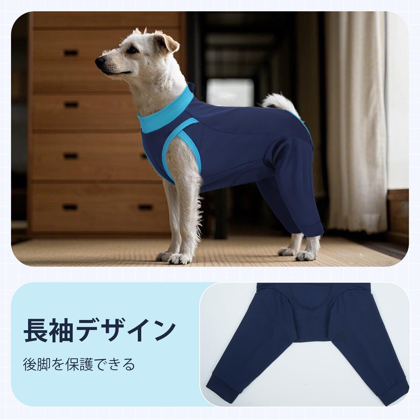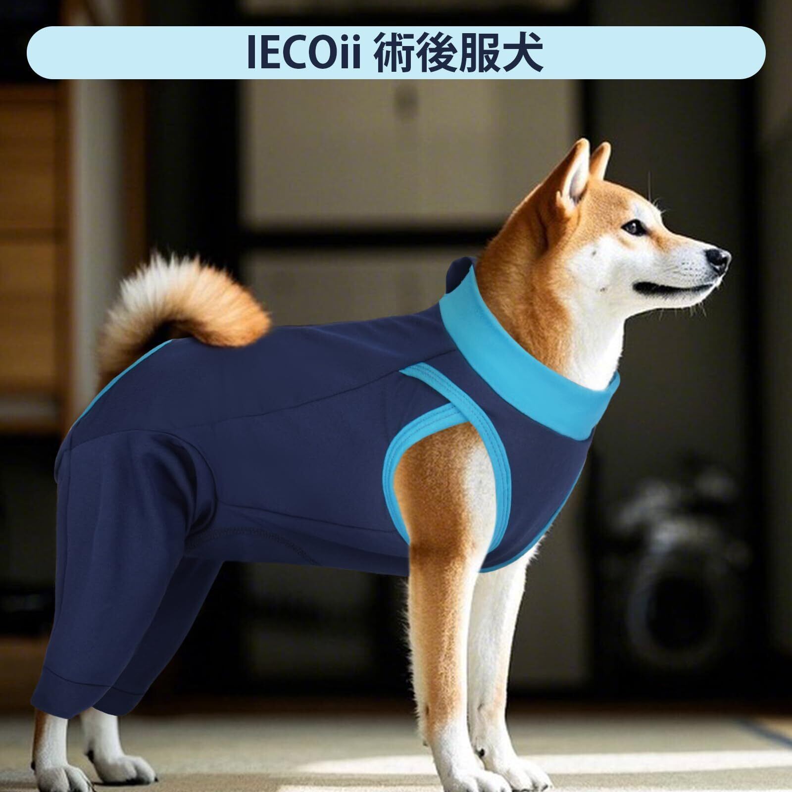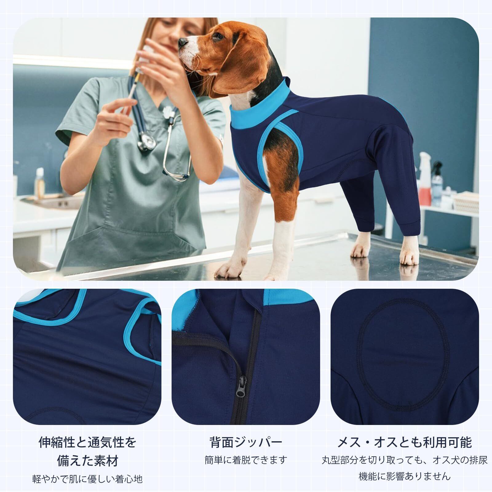 IECOii 術後服 犬 後脚と胴体の傷口保護 避妊手術 離乳 皮膚病 犬 服 背中開き ジップデザイン 伸縮性 介護服 肘用プロテクター エリザベスカラーの代わる ブルー XL