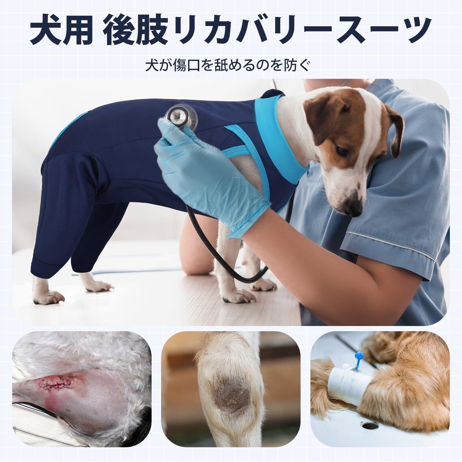 犬の手術用回復着:犬が腹部や後肢の手術創を舐めたり掻いたりしないように設計されたこの犬 術後服は、患部を覆い保護することで治癒を促進し、感染症のリスクを軽減します