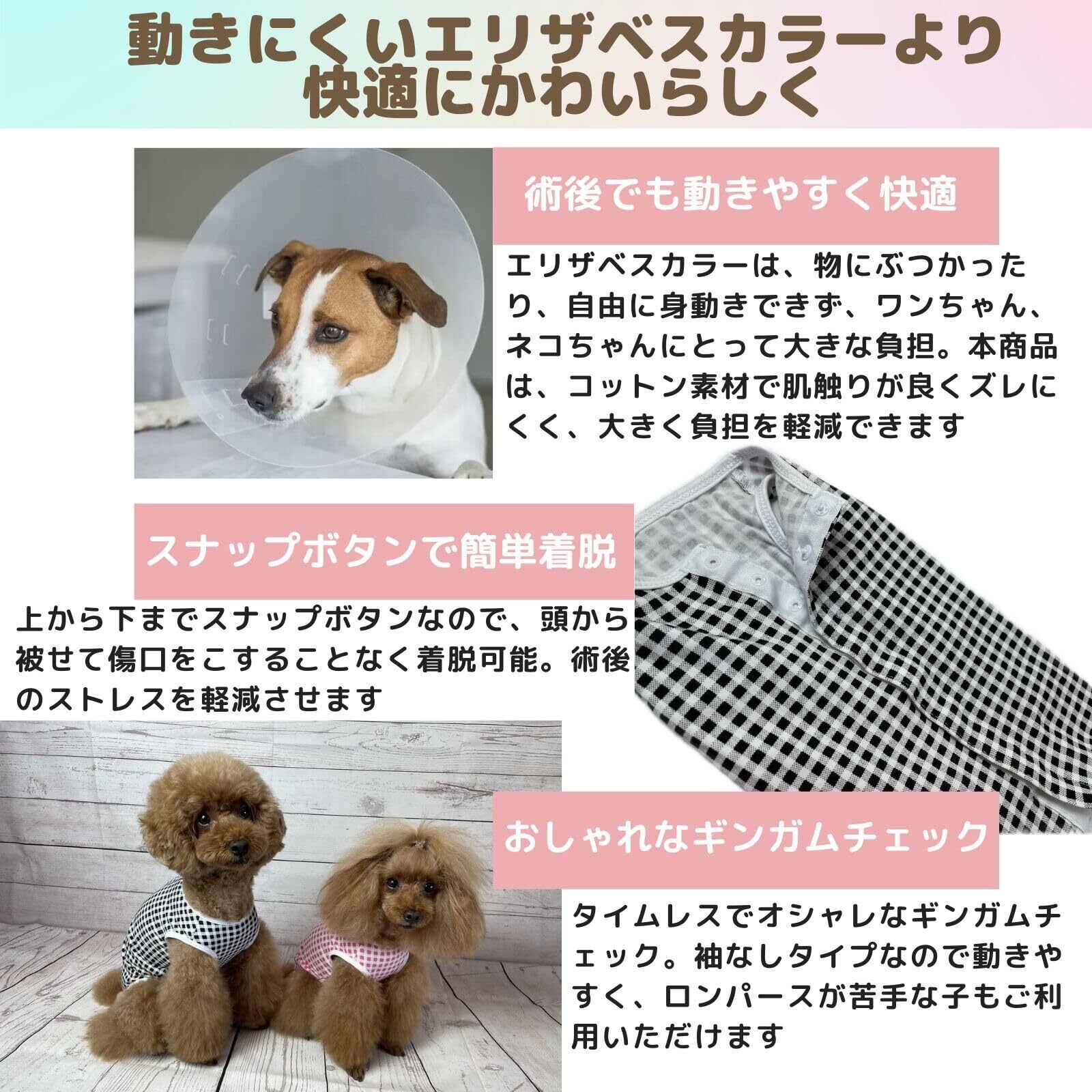 【体を快適に保護】エリザベスカラーは動きにくくてかわいそう。。ストレスなく快適に傷舐めを防ぎます