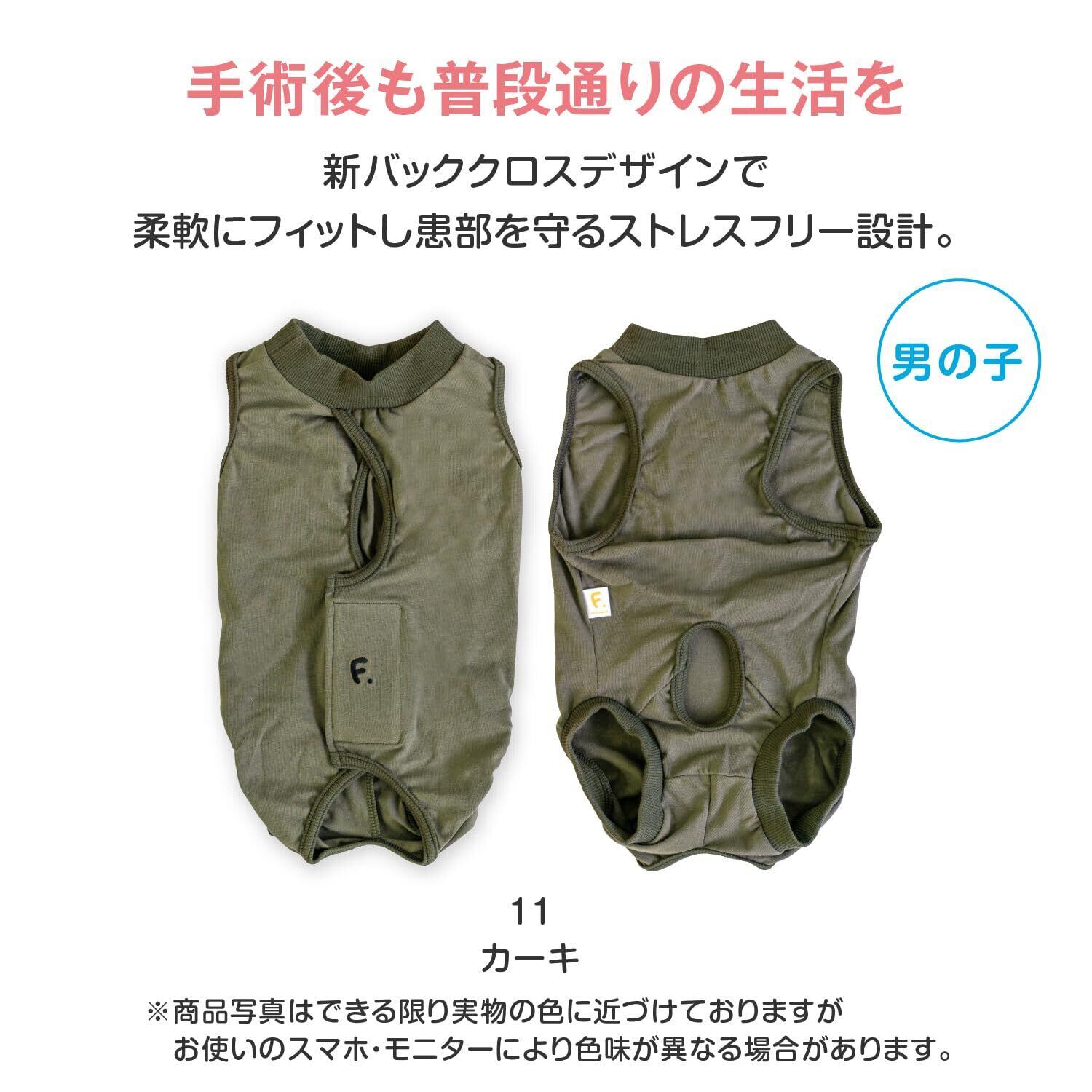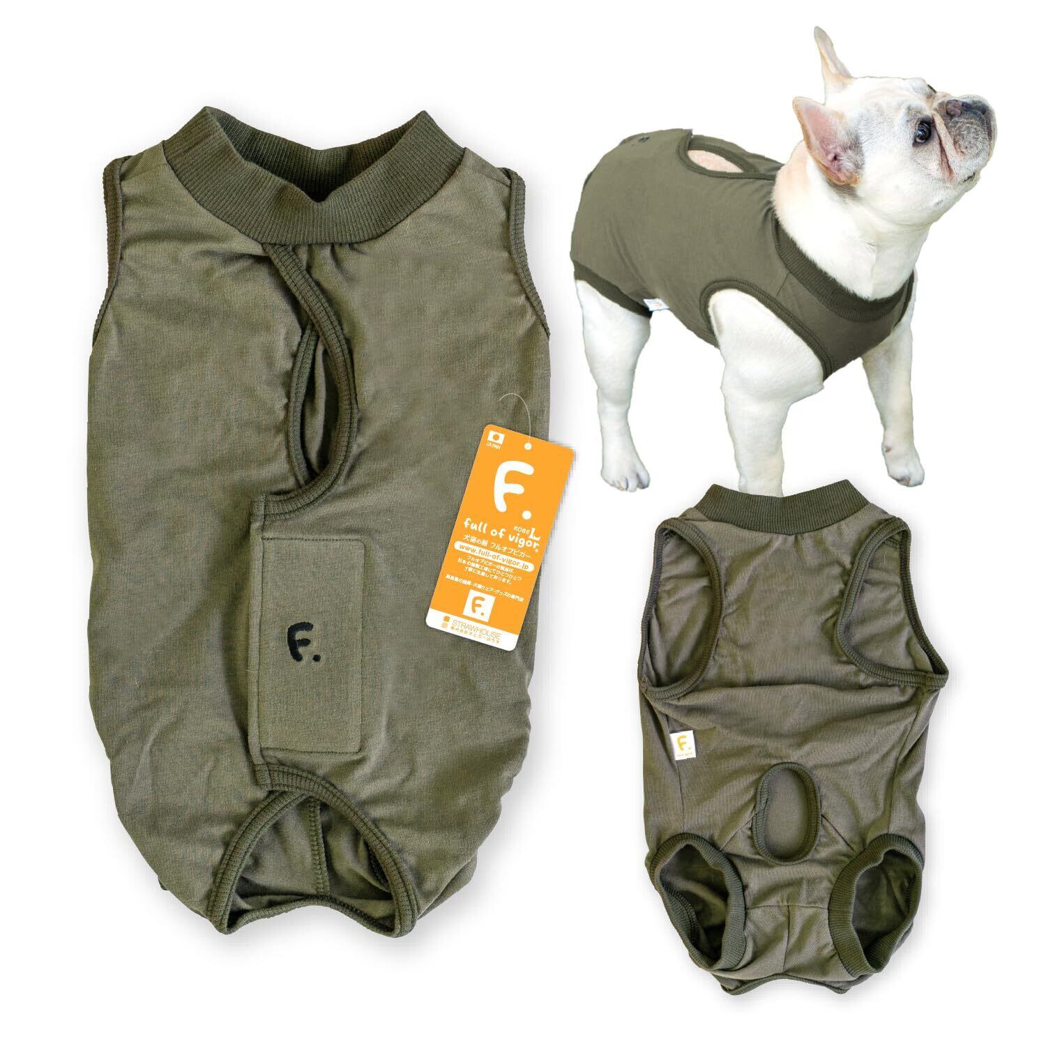 フレブル 傷口舐め対策 術後服 エリザベスウエア 男の子用 傷口保護 伸びる素材 犬の服 フルオブビガー カーキ FM