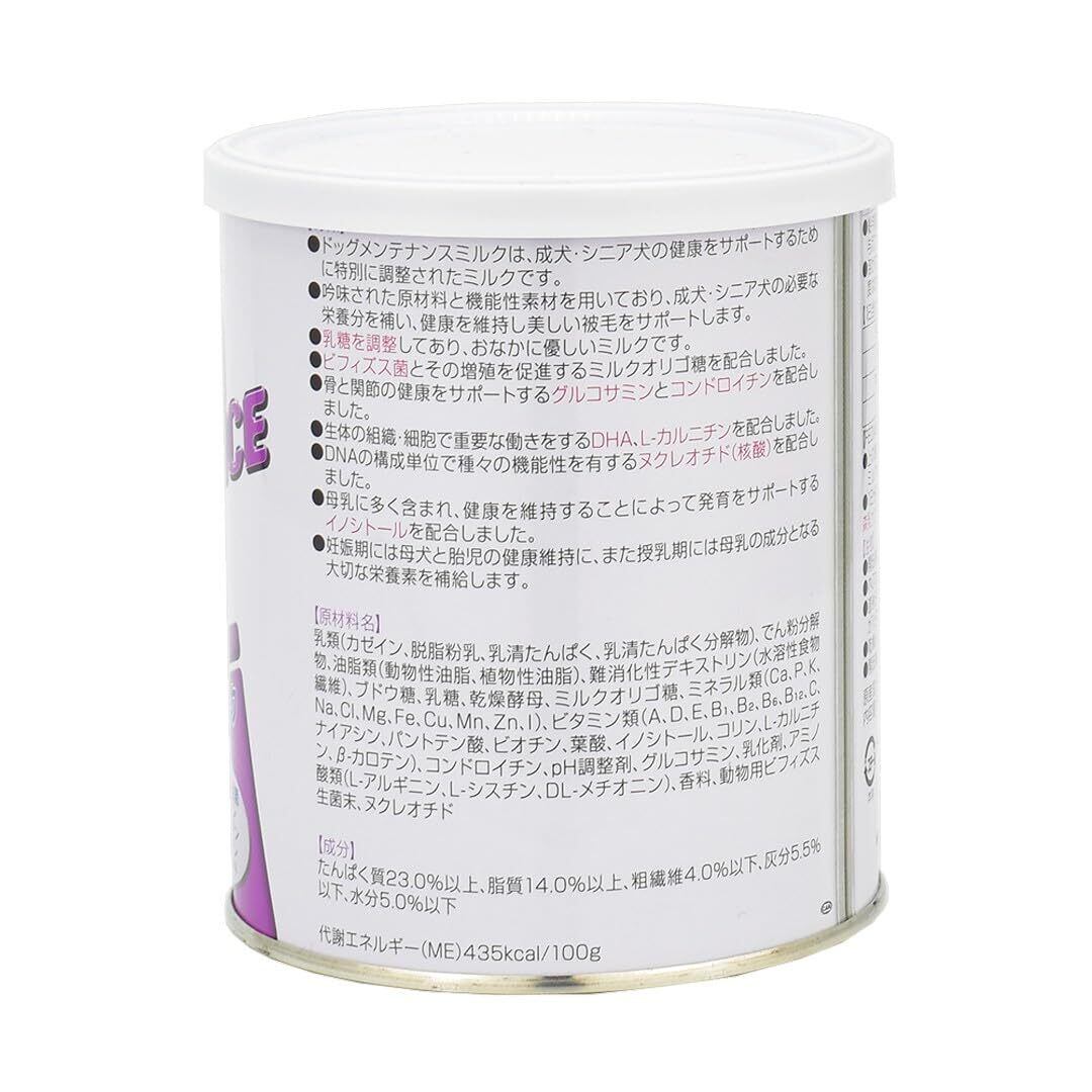 ドッグメンテナンスミルクは、成犬・シニア犬の健康をサポートするために特別に調製されたミルクです。吟味された原材料と機能性素材を用いており、成犬・シニア犬の必要な栄養分を補い、健康を維持し美しい被毛をサポートします。乳糖を調整してあり、おなかに優しいミルクです。DNAの構成単位で種々の機能性を有するヌクレオチド(核酸)、体重管理のためにカロリーを低減。L-カルニチン、母乳に多く含まれ、健康をいじすることによって発育をサポートするイノシトール、骨と関節の健康をサポートするグルコサミンとコンドロイチン、ビフィズス菌とその増殖を促進するミルクオリゴ糖を配合しました。 妊娠・授乳期の母犬にもご利用ください。妊娠期には母犬と胎児の健康維持に、また授乳期には母乳の成分となる大切な栄養素を補給します。