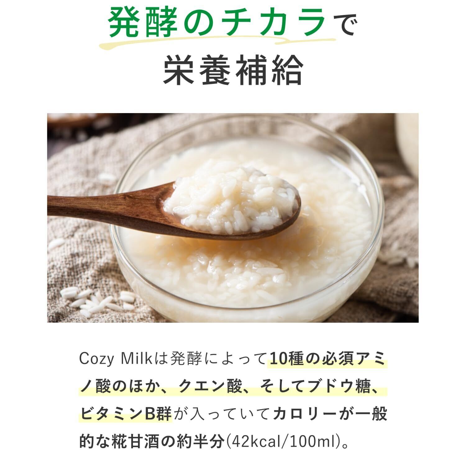 “甘酒仕立て”で栄養も水分補給もこれ一本:「飲む点滴」とも呼ばれる甘酒には、ビタミン・ミネラル・必須アミノ酸が豊富。水分補給としても機能するため、夏の熱中症対策や運動後にも活躍します。
