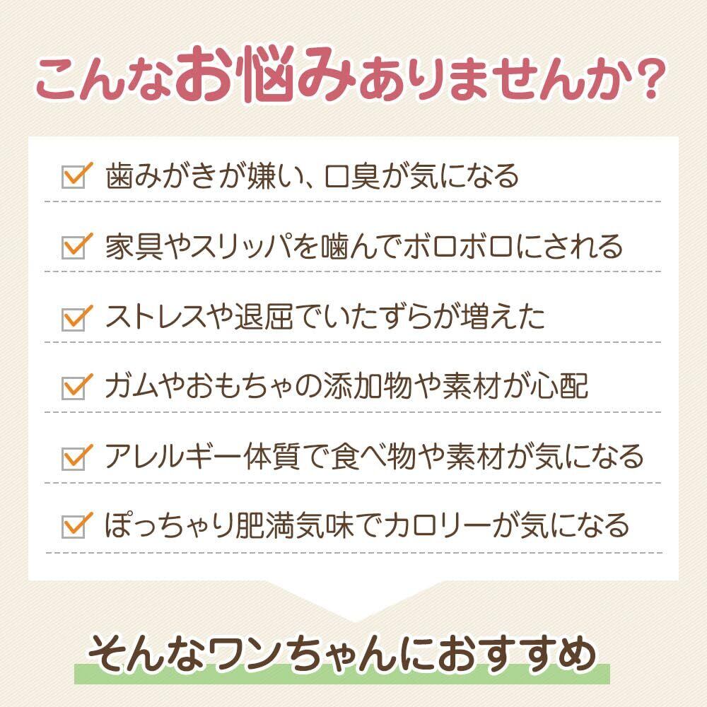 【ダイエットなどの体重管理にも】Noカロリー、Noカフェイン、添加物不使用、カロリーが含まれるガムやおやつの代わりに、体重管理が必要なワンちゃんにも安心してご利用いただけます。