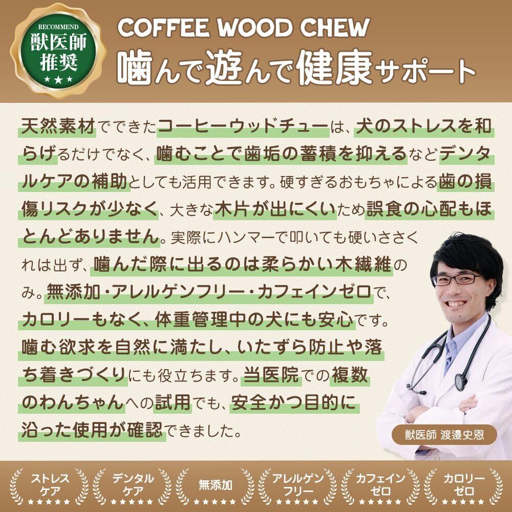 【天然素材で安心】 コーヒーの木を使用した犬用のおもちゃ(玩具)です。 硬く繊維密度が高いため、細かく砕け、ささくれしくいため、ワンちゃんが安心して遊べます。