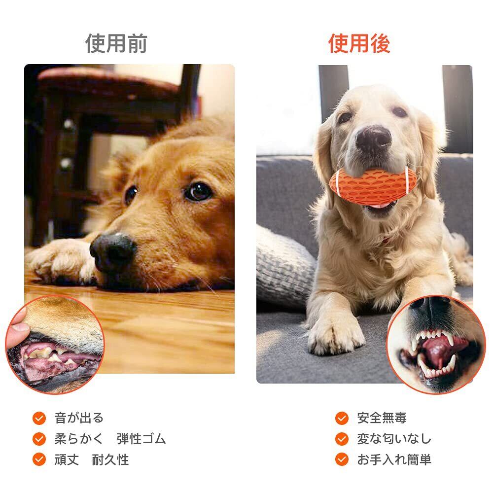 AUSCAT 犬おもちゃ 犬噛むおもちゃ 音が出る 小型犬・中型犬 ボール ラグビー 知育玩具 頑丈 天然ゴム 犬用玩具 ストレス解消(橙緑 2セット, S)