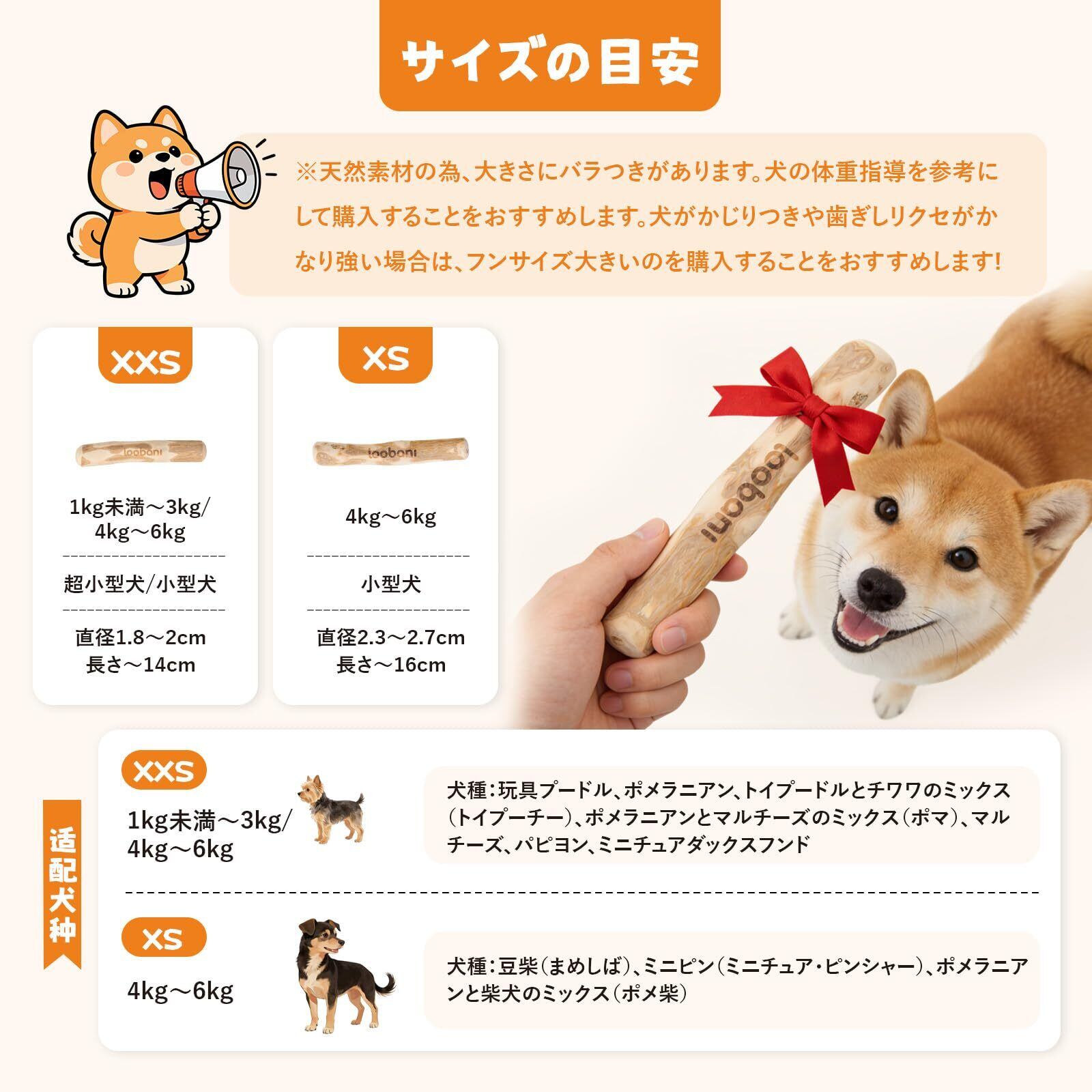 【注意事項】:天然素材製品ですので、万一犬が飲み込んでも大きな問題はありません。ただし、大きな破片を飲み込むと怪我をする危険性があるので、愛犬が誤飲しないように十分に注意してください。おやつを与える際は必ず飼い主の目の届く範囲で行ってください。製品に亀裂や破損が見られる場合は、直ちに取り上げて使用を中止してください 。