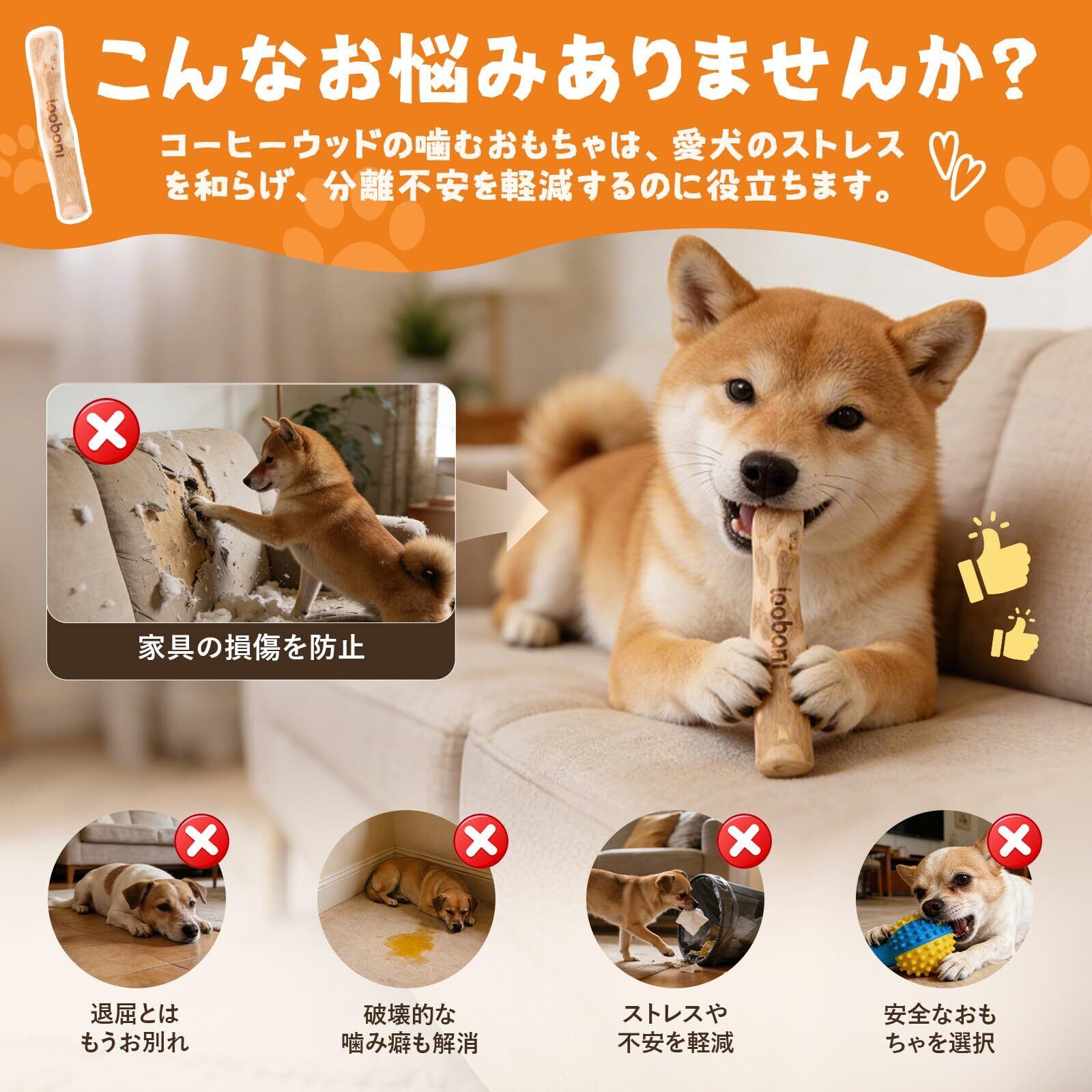 【多頭飼いのご家庭に&愛犬の健やかな噛む習慣をサポート】:犬のおもちゃ 噛むは「多頭飼いの愛犬たちとシェアできる、家庭の「調和係」です。それぞれの犬がお気に入りのコーヒーウッドおもちゃを持てば、集中と共有を学び、家の中の騒がしさや破壊行動は自然と減っていきます。安全で満足いく噛みごこちを日々繰り返すうちに、健全な咀嚼習慣が身につきます。これは、愛犬たちの歯と笑顔を守るだけでなく、多頭飼いならではの賑やかで平和な時間そのものを守るおもちゃです。