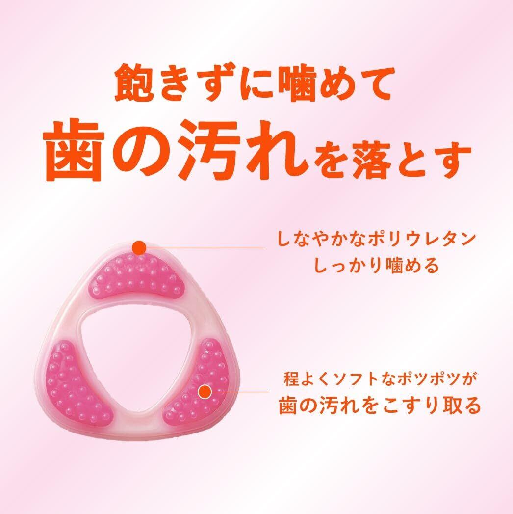 ●のどの奥に入りづらいおにぎり型で、しっかり噛んで歯垢を取る。