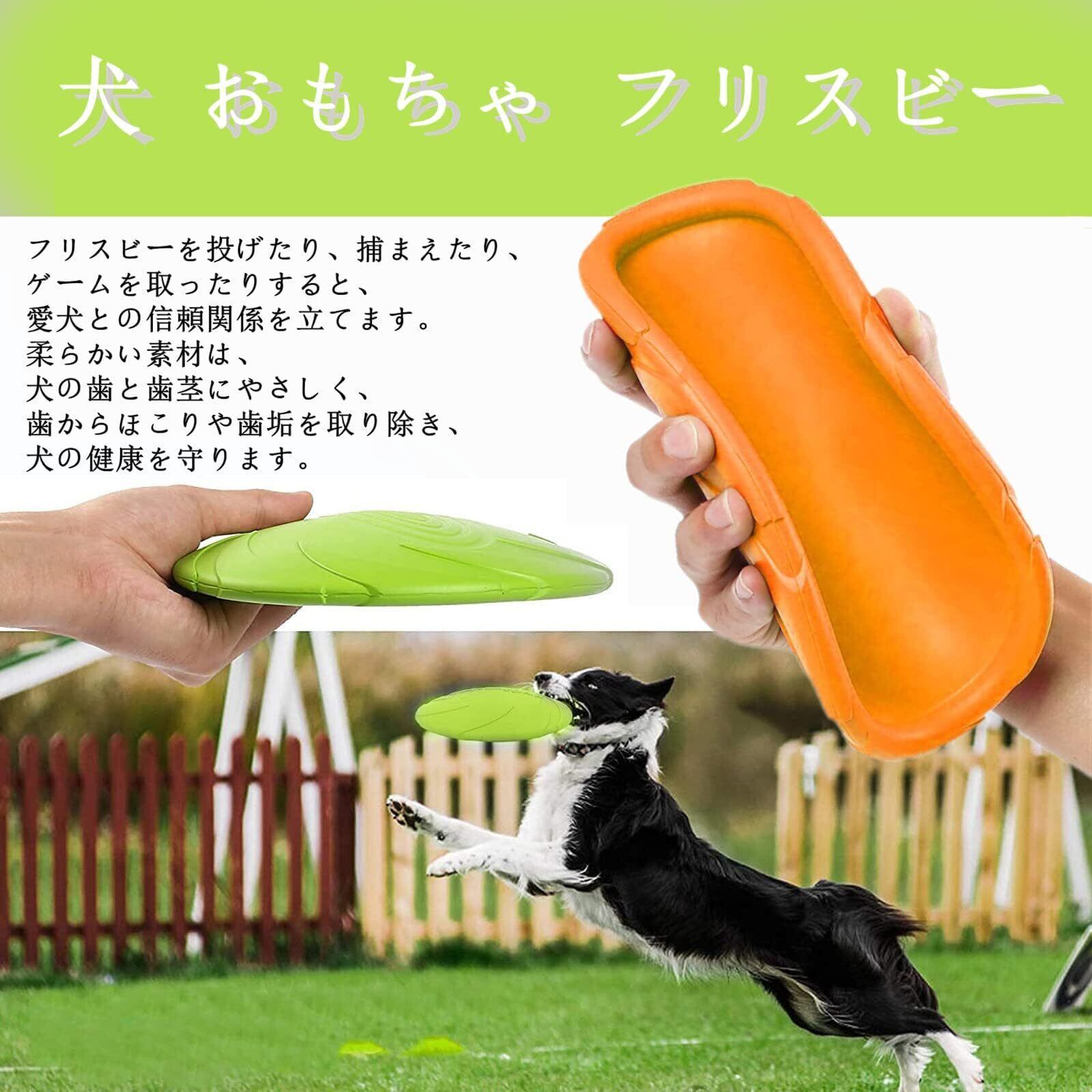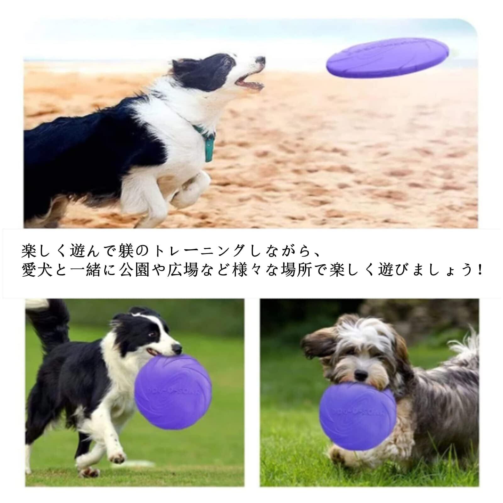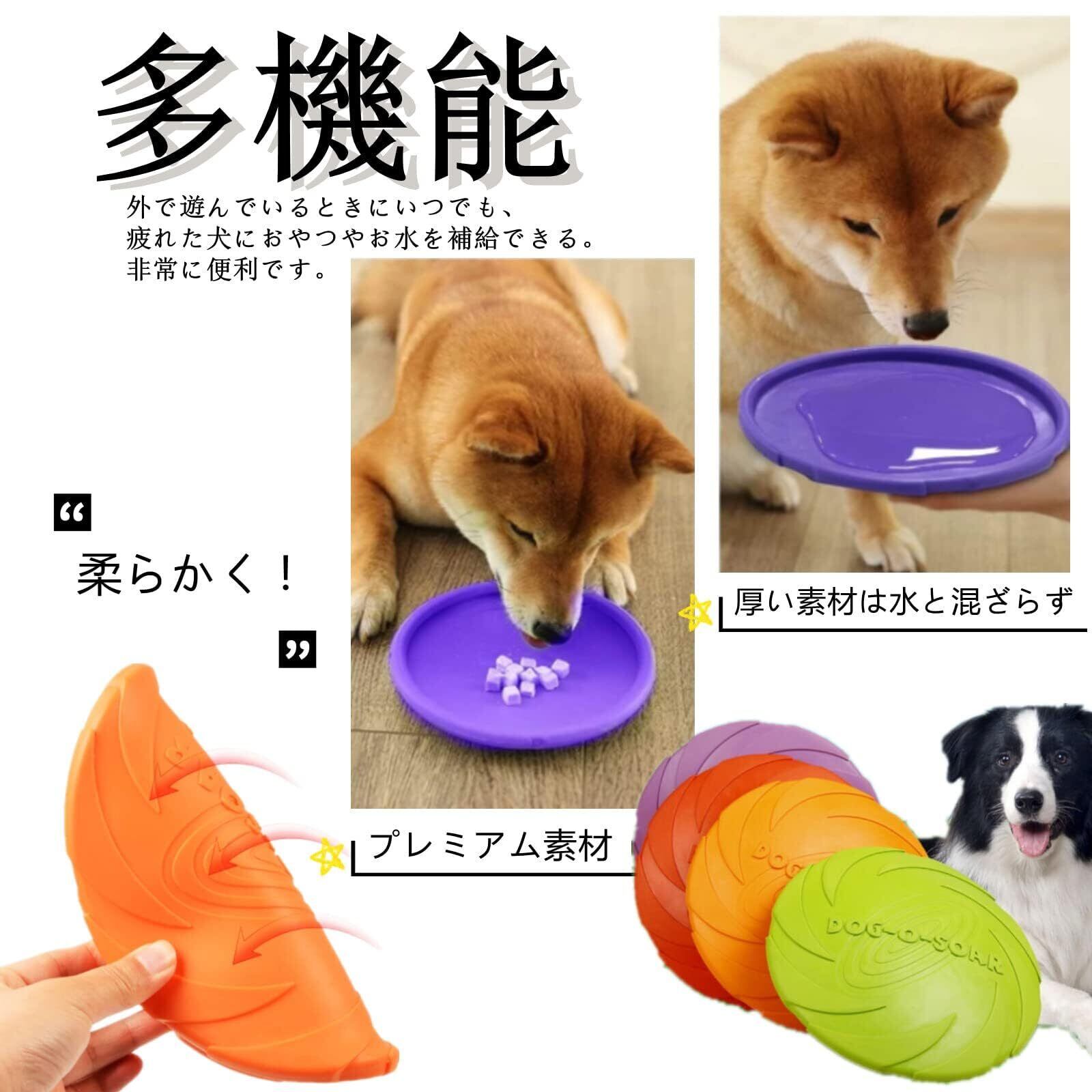 【犬の訓練】 : フリスビーを投げたり、捕まえたり、ゲームしたり、犬の運動不足を防止、ストレスを解消します。フリスビーを投げたり、捕まえたり、ゲームを取ったりすると、愛犬との信頼関係を立てます。柔らかい素材は、犬の歯と歯茎にやさしく、歯からほこりや歯垢を取り除き、犬の健康を守ります。楽しく遊んで躾のトレーニングしながら、愛犬と一緒に公園や広場など様々な場所で楽しく遊びましょう!